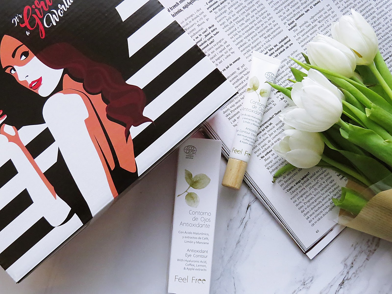 Kolejno, trafiłam na krem pod oczy nieznanej mi marki Feel Free jest to produkt Bio, zatem jestem tym-bardziej ciekawa. Poza tym kremy pod oczy testuję nałogowo, więc ten zasili moją kolekcję kremów do sprawdzenia. Produkt pełnowymiarowy 67 zł/ 20 ml