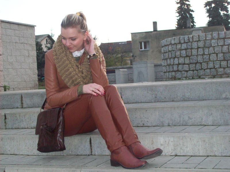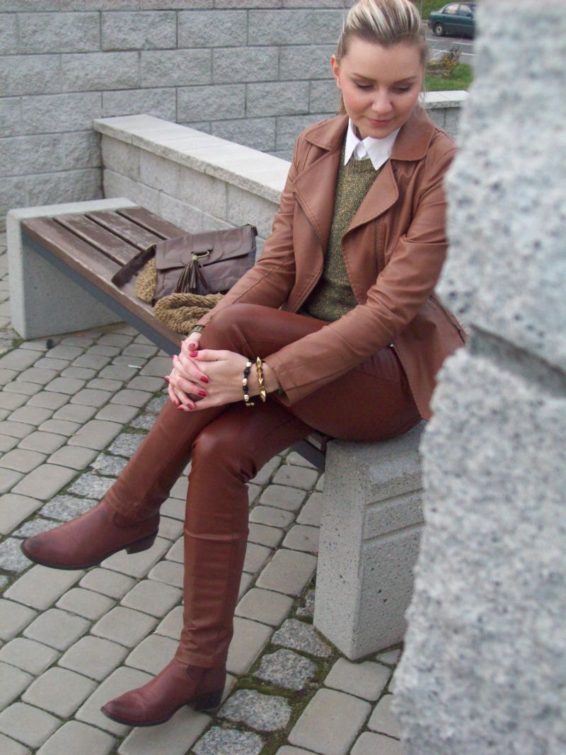super! nigdy nie podejrzewałabym, że brązowe skórzane spodnie mogą wyglądać tak fantastycznie! extra! :)