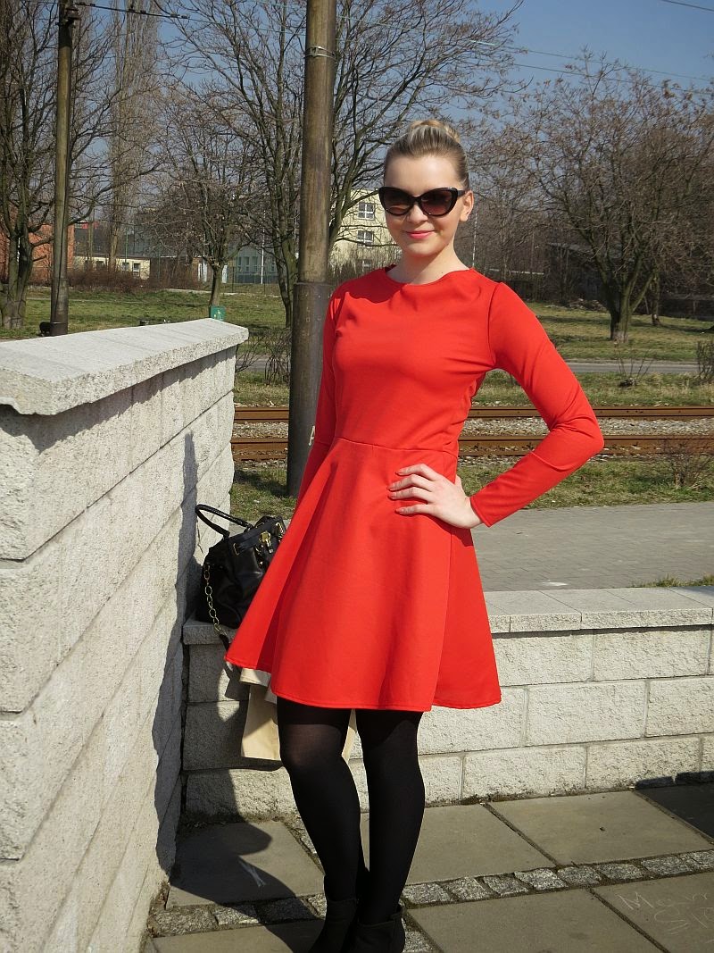 OdpowiedzUsuńUwielbiam kolor czerwony, sukienkę masz prześliczną. :) Ja dodałabym pasek i jakiś naszyjnik! :) Buziaki