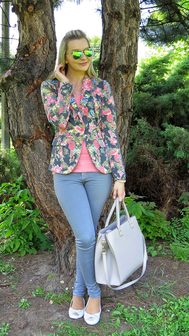 pogoda dla mnie idealna,nie ma skwaru,ale jest ciepło i przyjemnie,dlatego czas na stylizację.Jak wiecie uwielbiam marynarki,a motyw kwiatowy wiosną i latem skradł moje serce.Zatem nie mogłam się oprzeć tej marynarce :) Jest piękna,bardzo wygodna i mogłabym ją nosić codziennie :) Pomimo tego,że dzieje się na niej dośc dużo,pasuje do większości rzeczy w mojej szafie.Myślę,że nadaje się idealnie na polską,złota jesień :) Pozdrawiam