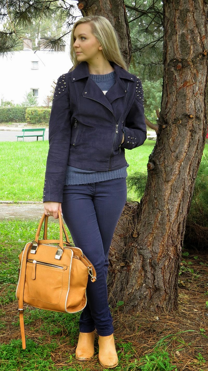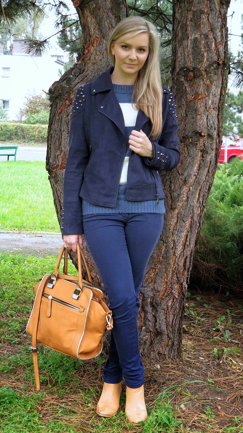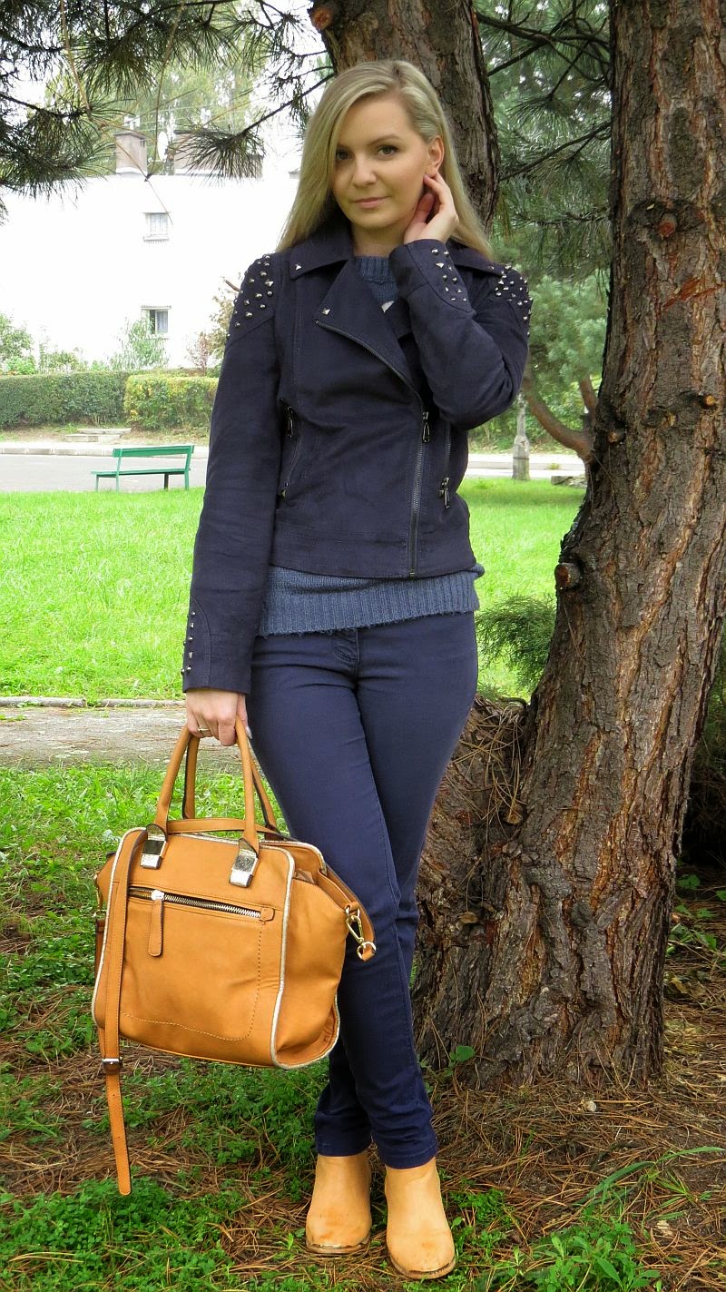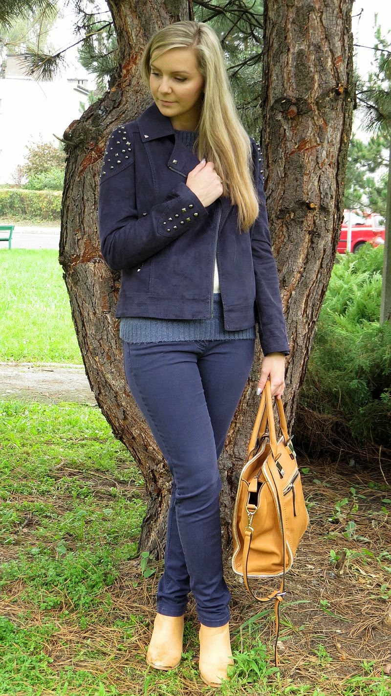 OdpowiedzUsuńPięknie połączyłaś granat z... karmelem :) kurteczka śliczna i torebka zupełnie w moim stylu :)