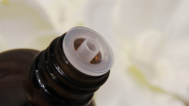 przypomina mi wyglądam opakowania apteczne, ciemne szkoło z charakterystycznym zakraplaczem. Podoba mi się ta forma dozowania produktu, ponieważ kroplomierz łatwo kontrolować i w ten sposób nie marnujemy produktu. Bardzo skromna szata graficzna, to lubię :)