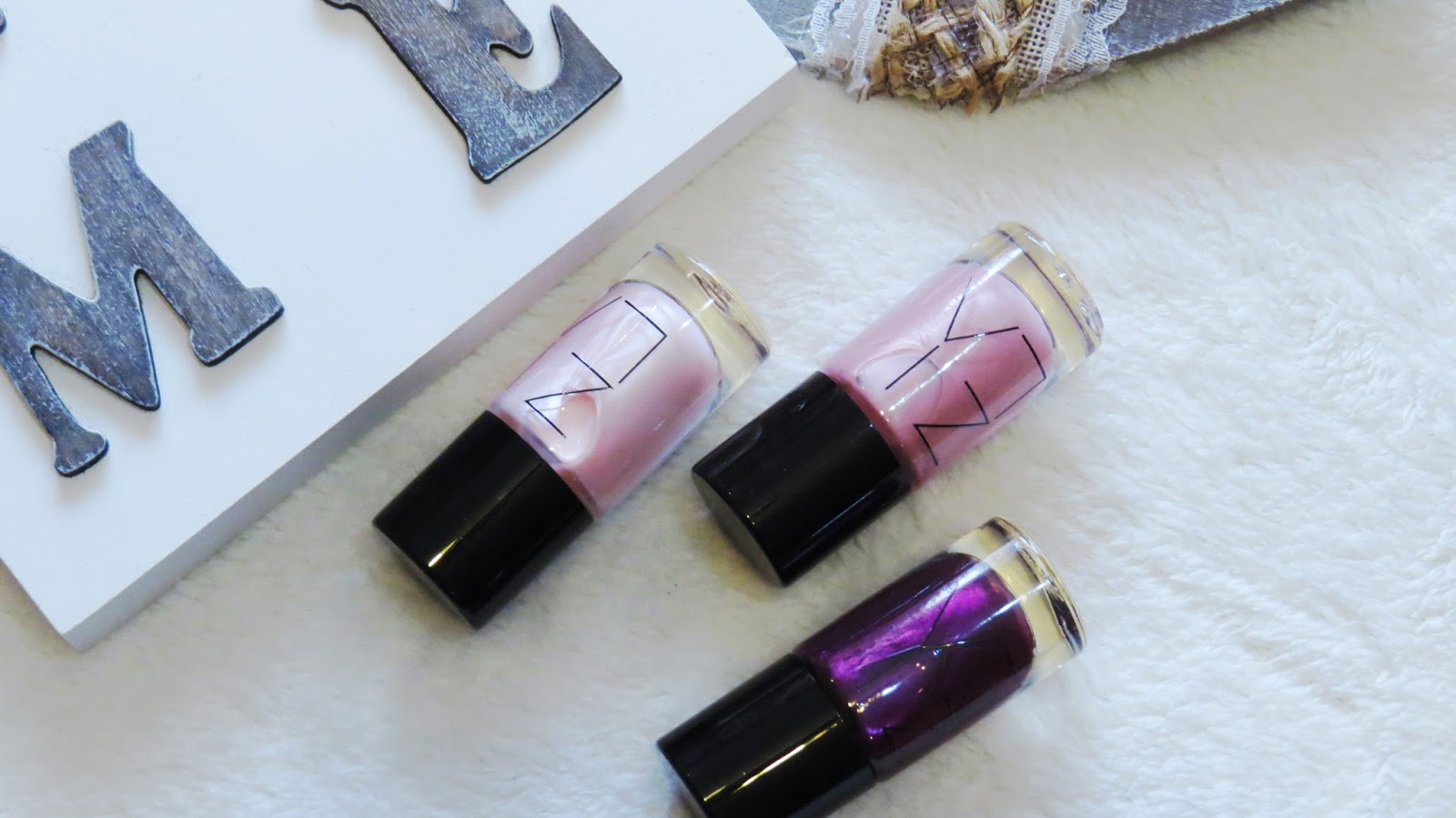 Zacznę od tego, że od pierwszej chwili, najbardziej urzekł mnie fiolet, który jest nasycony, bardzo elegancki i wyrazisty. Ma w sobie różowe i niebieskie pigmenty, dzięki temu pięknie migocze i jest wielowymiarowy. Pozostałe dwa kolorki są bardziej stonowane, brudny róż, ładnie prezentuje się na płytce, natomiast perła już mniej mnie zadowala....