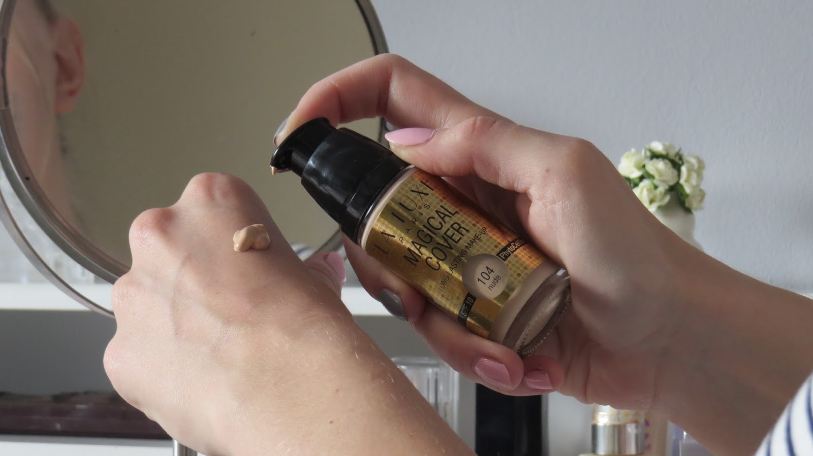 Podkład, za zadanie ma mocne krycie... Ja z reguły omijam takie produkty, ponieważ wolę efekt rozświetlonej, zdrowej cery. Jednak, musiałam spróbować i co się okazało?! To za chwilę :) Zacznę od tego, że podkład ma dość gęstą, kremową konsystencję, szybko i łatwo się rozprowadza, nie robi plam, nie smuży i nie ciemnieje. Lubię nakładać go Beauty Blenderem. Mój kolor 104 jest bardzo przyjemnym, neutralnym beżem, myślę, że będzie pasował większości z nas... Działanie.,.przyznaję, że jestem w szoku. Podkład przepięknie wygląda na skórze, nie tworzy płaskiego matu, nie wyglądamy jak smutny wampir, wręcz przeciwnie. Krycie ma fantastyczne i naprawdę mocne, wytrzymuje bardzo długo na mojej mieszanej cerze, jest przystępny cenowo i uważam, że to naprawdę świetny podkład. Chętnie po niego sięgam. Nie zapycha, nie ciemnieje, warto się za nim rozejrzeć!