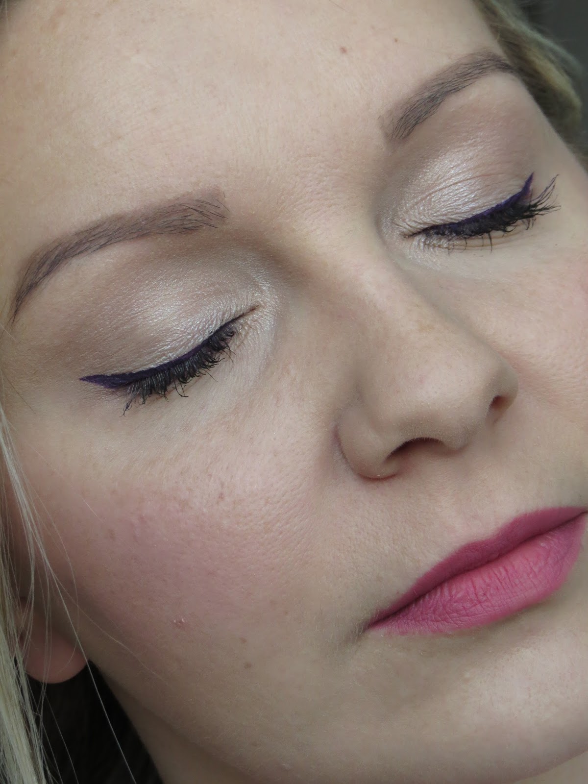 Eyeliner, marki Eveline, to moje odkrycie tego roku, fioletowy kolor, idealnie podbija zieloną tęczówkę. Konsystencja jest idealna, kolor jednolity, bez nieestetycznych prześwitów, cienki, precyzyjny pędzelek i cena. Wszystko na ogromny plus :)