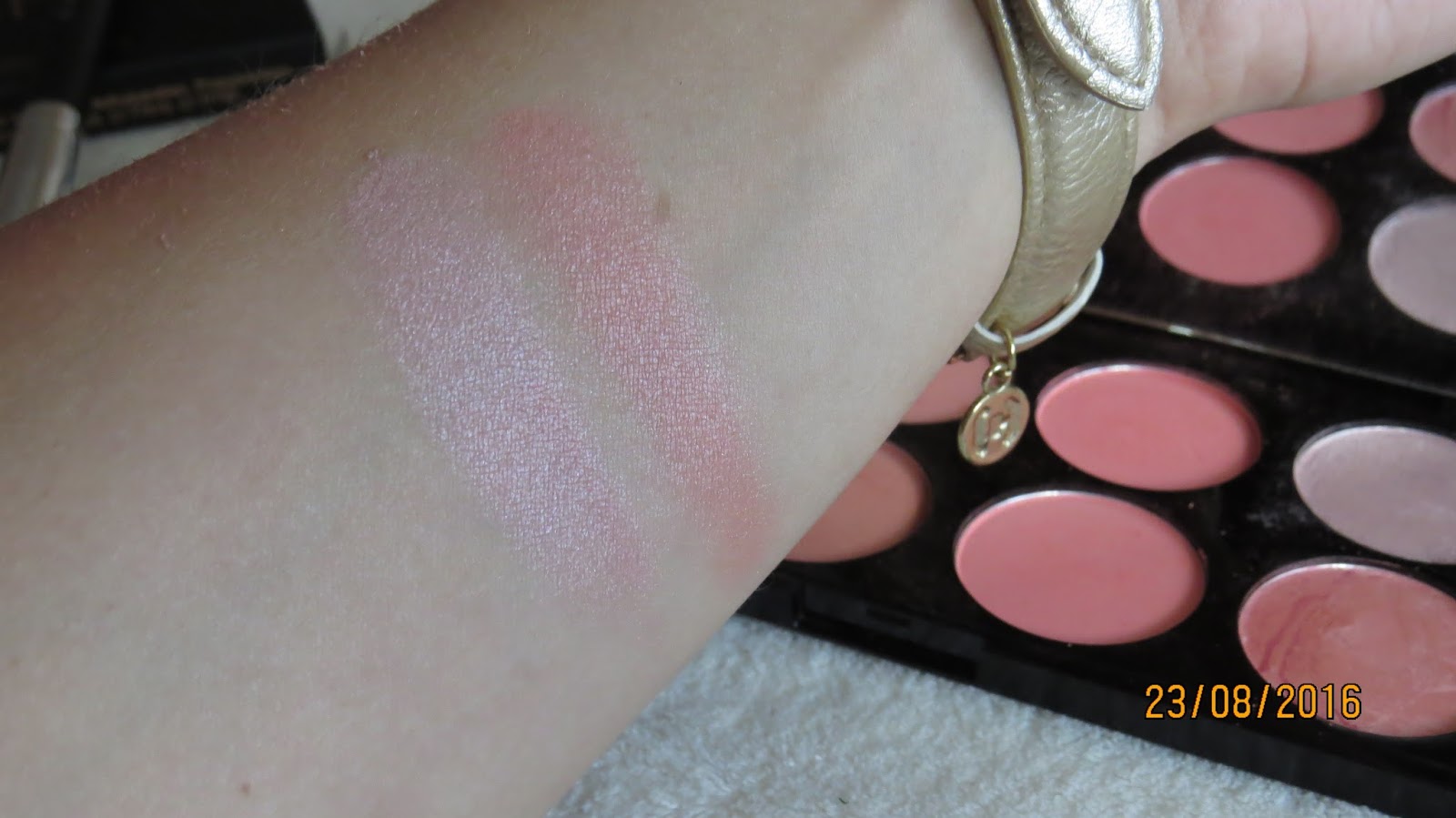 W palecie, znajdują się także dwa róże/ rozświetlacze, które prezentują się prześlicznie, dają na skórze efekt pięknej tafli :)