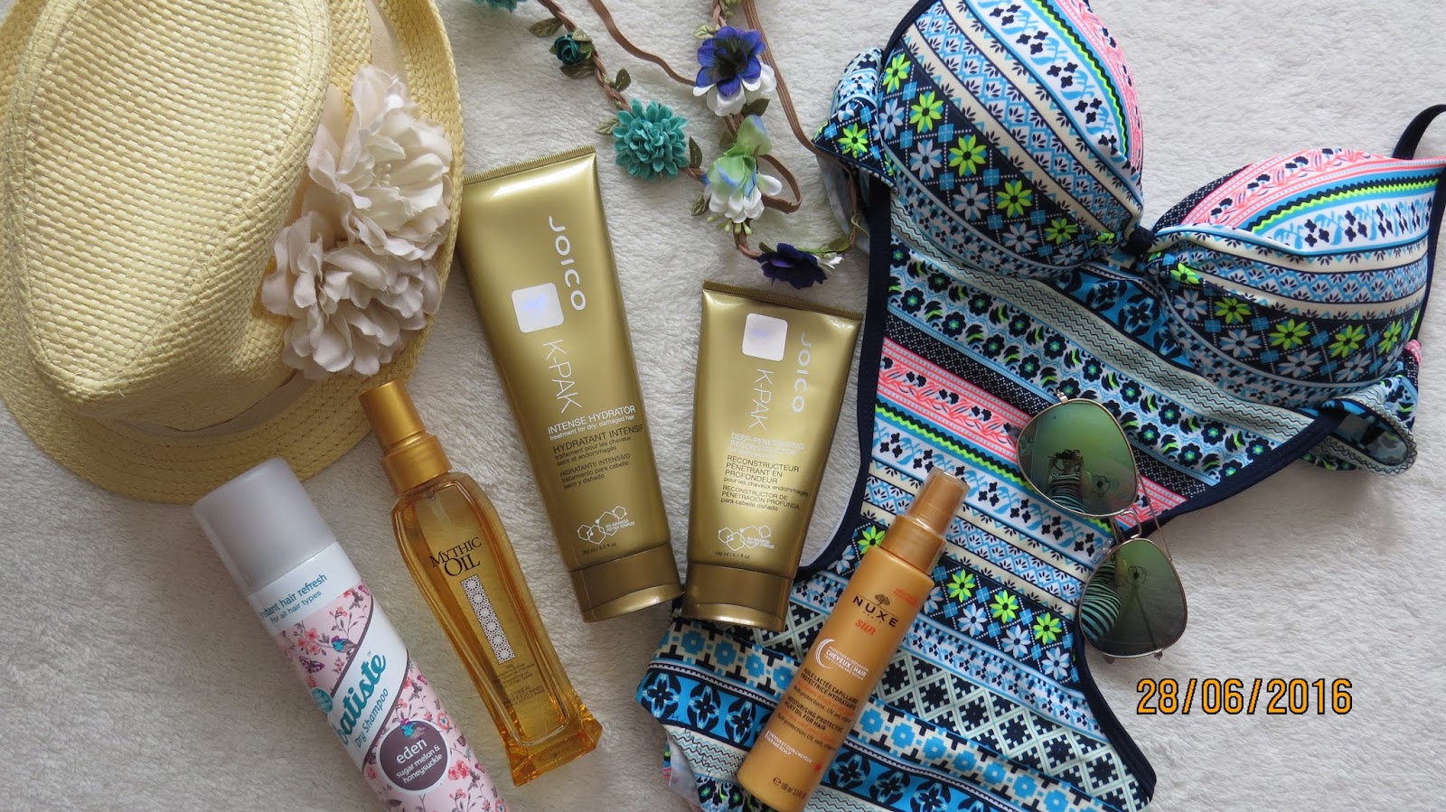 Zacznę od włosów i przyznam, że jest tego naprawdę sporo :) Ale uwielbiam dbać o włosy i staram się, aby słońce, woda i wiatr ich w żaden sposób nie uszkodziły. Zabieram ulubieńców i niezbędniki.