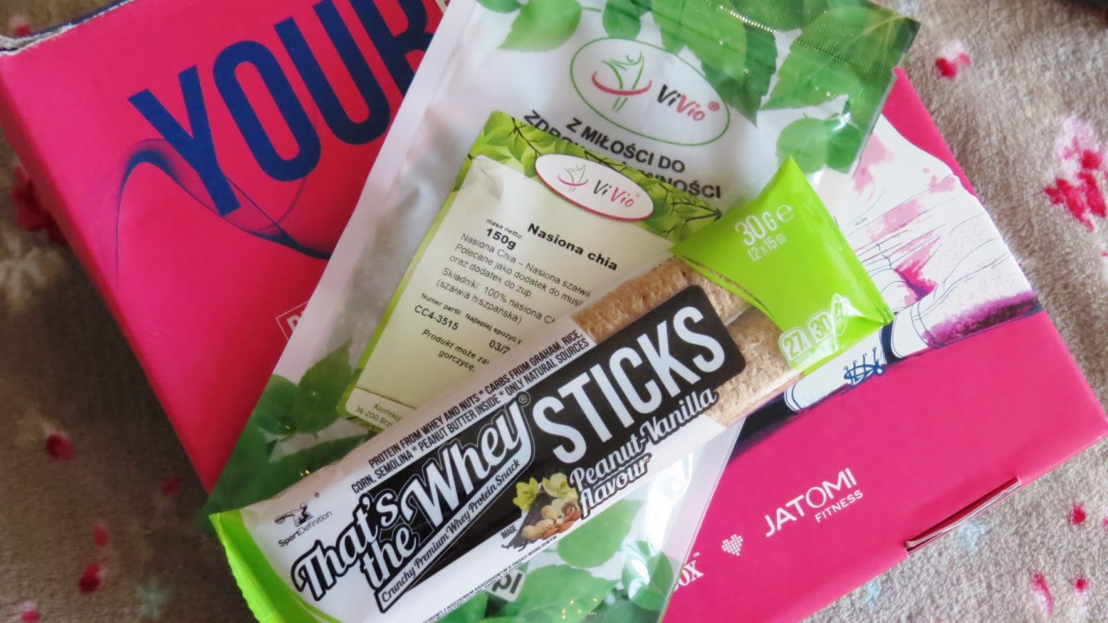 Vivio, nasiona Chia. produkt pełnowymiarowy 5,50 zł / 150 g, chętnie zrobię z nich jakiś zdrowy deserek :) Sport Definition, that's the whey sticks, produkt pełnowymiarowy 4,00 zł / 30 g Batonik, jako przekąska po ćwiczeniach :)