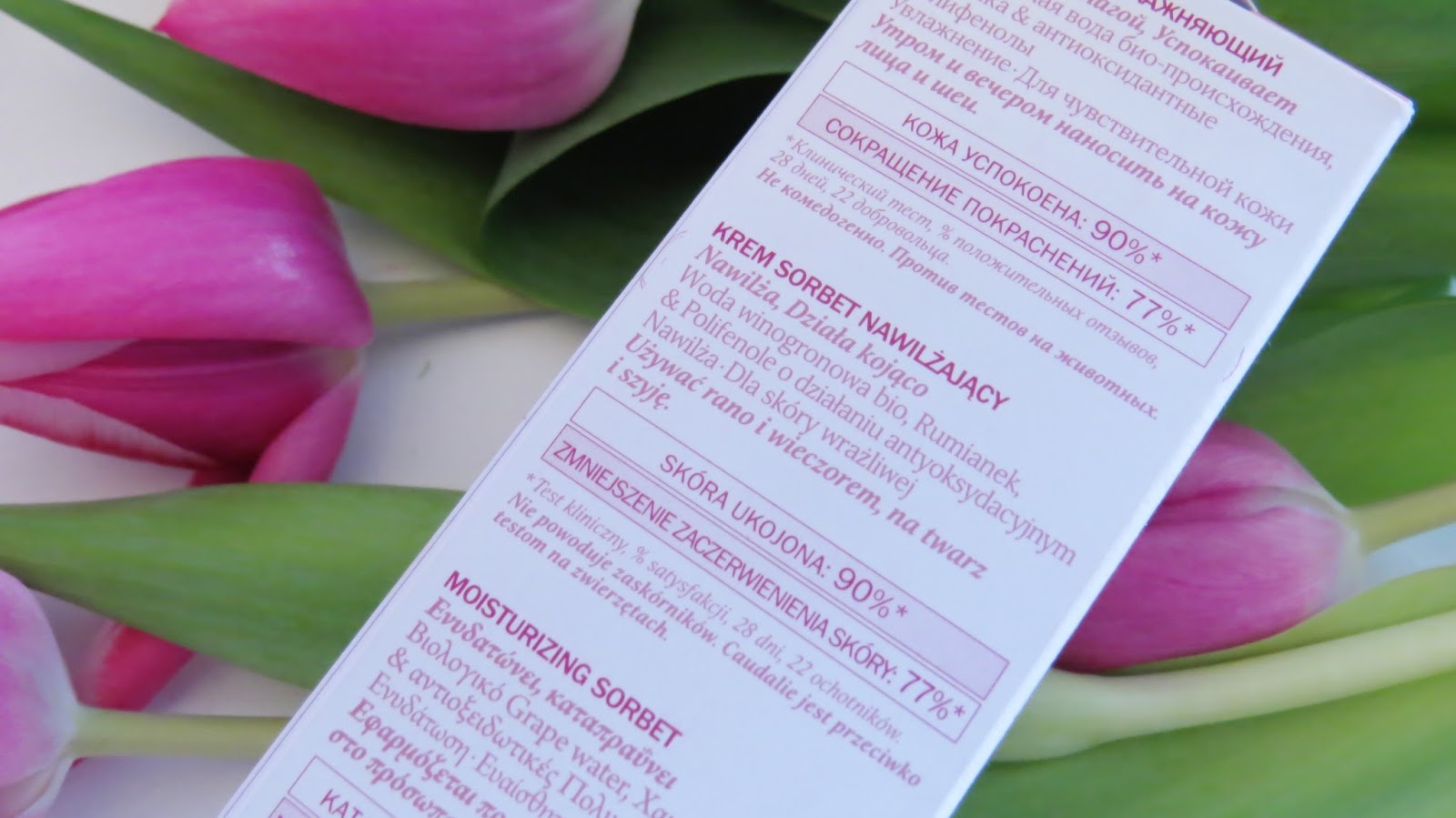 Produkt, który pragnę Wam dzisiaj przedstawić to sorbet nawilżający, który przeznaczony jest to cer suchych, odwodnionych i wrażliwych. Ale dla mojej mieszanej cery, sprawdził się znakomicie. Dlatego jeszcze raz podkreślę, że skóry mieszane i tłuste, także potrzebują nawilżenia i nie bójmy się dać tego naszej skórze.