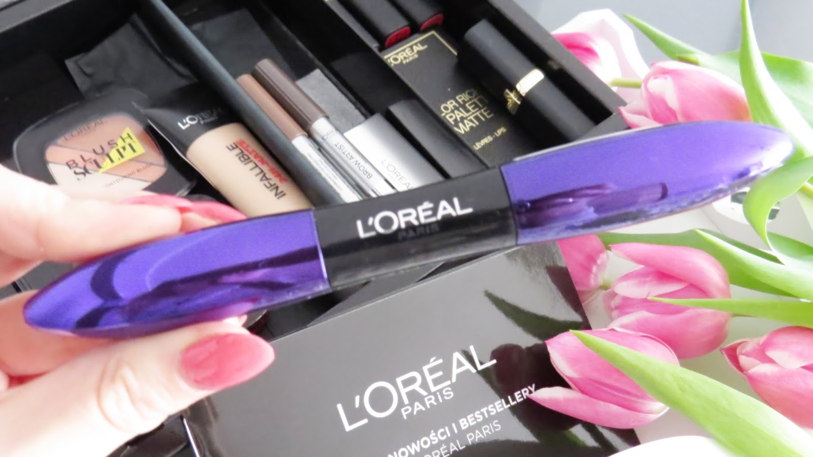 Kilka dni temu, siedząc w domu z posępną miną i jeszcze obolałym ciałem, do drzwi zadzwonił dzwonek. Kiedy otworzyłam, zobaczyłam twarz znajomego już kuriera, który miał dla mnie przesyłkę. Niczego się nie spodziewałam w tych dniach, więc szybko udałam się po nożyczki i zaczęłam odpakowywać pudło... Kiedy udało mi się przebrnąć przez warstwy taśmy i foli, oczom moim ukazało się czarne, eleganckie pudełko z napisem Loreal... Po raz pierwszy otrzymałam przesyłkę od tej marki, z czego oczywiście bardzo się ucieszyłam. Co jak co ale najlepszym lekarstwem dla kobiety są kosmetyki :)