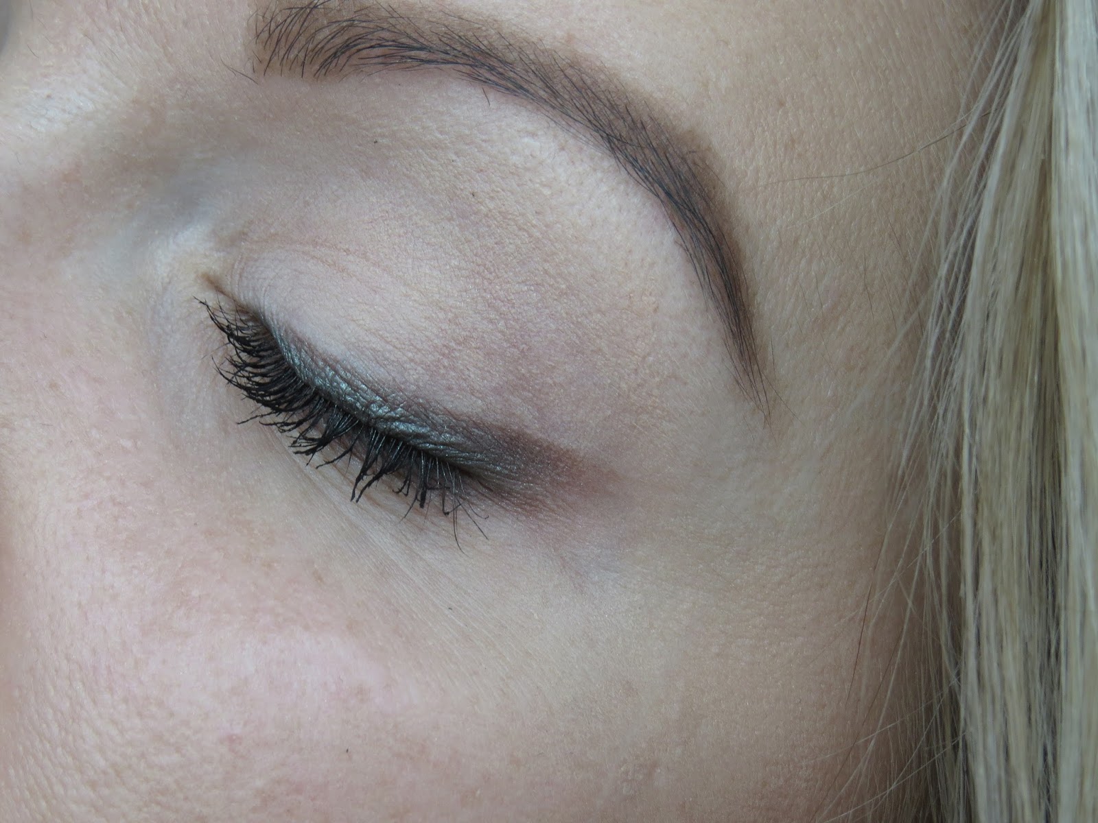 Oczywiście, weźcie poprawkę na to, że ja nie jestem makeup artist i są niedociągnięcia w tym co widzicie :) Najważniejszy w tym wszystkim jest kolorek, który odkryłam i z którego teraz będę często korzystała :) Cień o którym mówię to kolor o nazwie "Forever Yours" W paletce wygląda na ciepły ceglaty brąż, na czarnej kredce okazuję się duochromem, opalizującym na zielona. Po zmieszaniu go, wydobywa się z niego ciemny brązowy o ciepłych tonach.