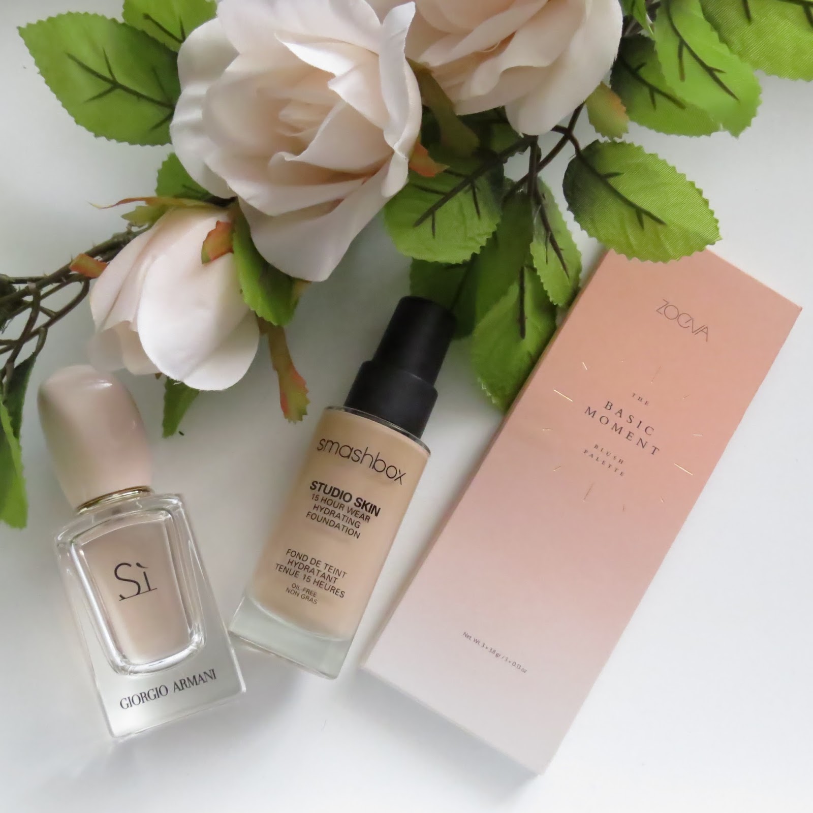 Patrząc na to zdjęcie, dopiero dostrzegłam, jak mi się tutaj wszystko pięknie i pastelowo komponuję. Ale to wspaniale, bo pastele to zdecydowanie moje barwy. Poczyniłam małe zakupy i zdecydowanym się ma podkład marki Smashbox, oraz najnowszą paletkę do konturowanie marki Zoeva. Perfumy, dostałam w prezencie od męża, ale od dawna mi się marzyły. Nie sadziłam, że zakocham się w tych produktach tak szybko i tak oddanie :)