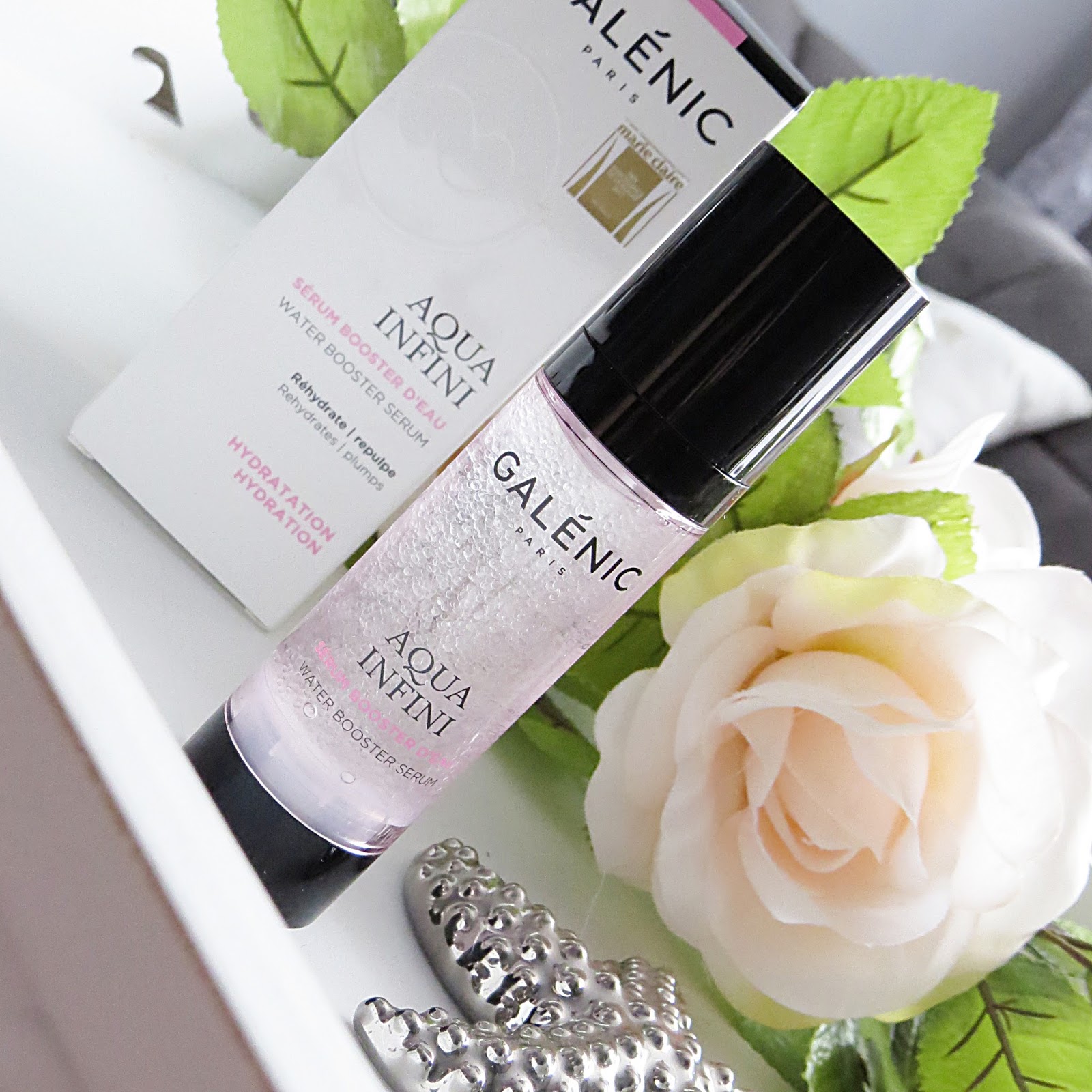 Upały nie odpuszczają i choć marudzę jak typowy Polak, że zimą za zimno, a latem zbyt gorąco. Mam argument, żeby się usprawiedliwić... każdą porę roku lubię, ale najbardziej kocham jesień której wypatruje :) Ale skoro mamy upały, musimy sobie z nimi radzić. Oczywiście bez wody termalnej nie ruszam się z domu, ale do za mało jak dla mojej cery, dlatego potrzebowałam produktu, który zaspokoi jej pragnienie, nawilży, dotleni i zregeneruje. Sięgnęłam po serum Aqua Infini marki Galenic. I ta mała, słodka, różowa buteleczka, okazała się moim wybawcą... Ale zacznijmy od początku