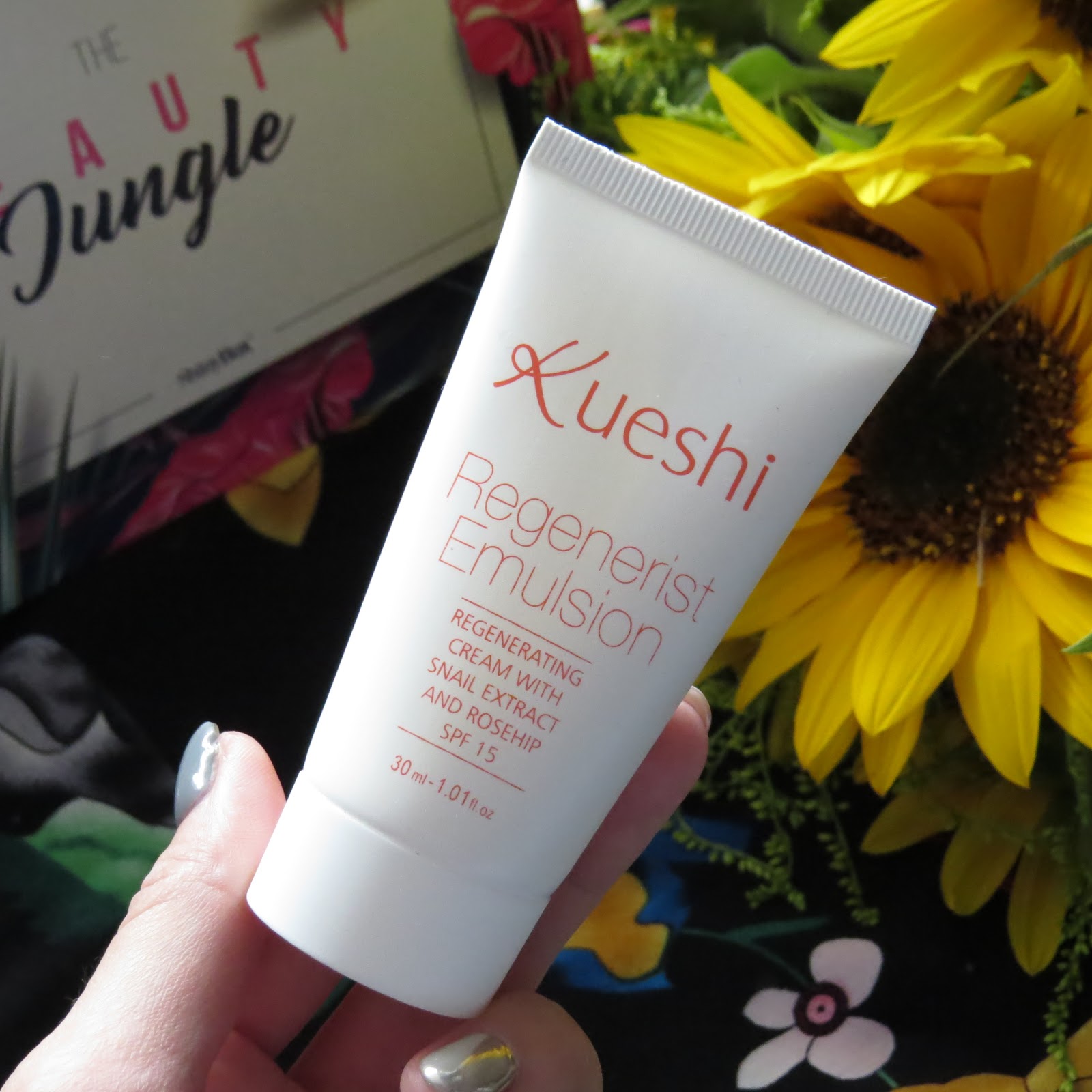 Na koniec, wisienka na torcie, czyli kolejny produkt hiszpańskiej marki Kueshi. Tym razem to emulsja do twarzy, która ma tak cudowne właściwości, że nie mogę się doczekać, kiedy jej użyję :) Znajdziemy w niej wyciąg ze śluzu ślimaka i olejek różany. Krem ma pomóc niwelować blizny, oparzenia, przebarwienia skóry i drobne zmarszczki. Ostatnie dwa produkty tej marki to moje hity, więc nie mogę się już doczekać :) Cena tego produktu to 76zł / 50 ml