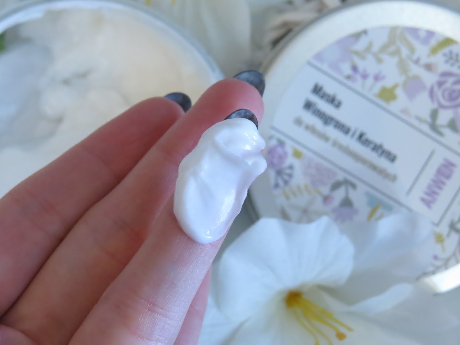 Cześć mam na imię Karolina i mam średnioporowate włosy. To takich wniosków doszłam już jakiś czas temu bacznie obserwując swoje włosy. Metodą prób i błędów sięgałam po różne odżywki i maski, a także wszelkie olejki do pielęgnacji. Po jednych widziałam pozytywne efekty, po innych niechciany puch. Przez kilka lat skłaniałam się ku naturalnej pielęgnacji, co oczywiście przekładało się na wygląd moich włosów. Kiedy raz zgrzeszyłam, dalej już samo poleciało... To trochę jak z dietą, jeden trójkącik pizzy i nawet nie wiesz, kiedy masz 5 kg nadwyżki. Podobnie było w moim przypadku, kiedy włosy wyglądały już bardzo źle, zadziałałam ekspresowo i sięgnęłam po profesjonalne kosmetyki, które oczywiście uporały się z tym. Ale niesmak porzucenia bardziej naturalnych sposobów pozostał. Z pomocą przyszedł mi sklep Kopalnia Zdrowia, który wysłał mi do testów maskę, stworzoną z myślą o moich włosach, czyli maskę Winogrona i Keratyna dla włosów średnioporowatrych od Anven.