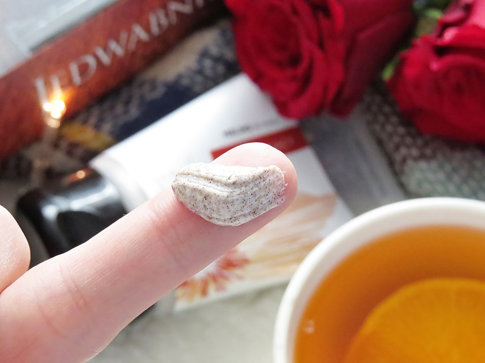 Peeling ma bogatą i treściwą konsystencję, wystarczy odrobina, aby wykonać przyzwoity masaż skóry. Wydajność jest naprawdę imponująca jak na tak małą tubkę :) Zapach to kolejny plus tego produktu jest iście jesienny troszkę migdałowy, troszkę orzechowy i troszkę owocowy. Mieszanka doskonała! Olejowy peeling to świetna alternatywa dla mocnych zdzieraków, które niejednokrotnie powodują podrażnienia. Peeling pozostawia na skórze, wyraźna warstwę ochronną. Po takim masażu cera jest oczyszczona, lepiej ukrwiona, nawilżona i odżywiona. Zawartość olejków w składzie ma zbawienne działanie. Skóra nie jest podrażniona, ani zaczerwieniona. Czuć jedynie przyjemną miękkość i sprężystość naszej skóry