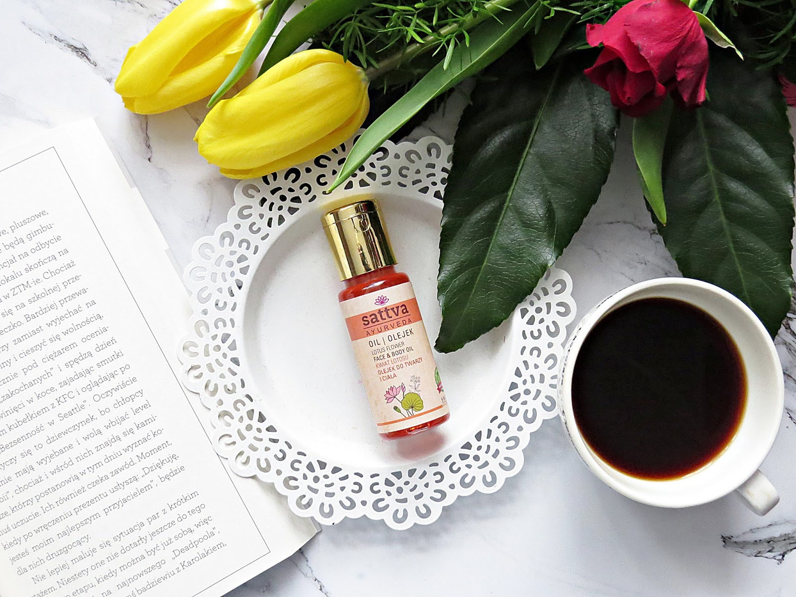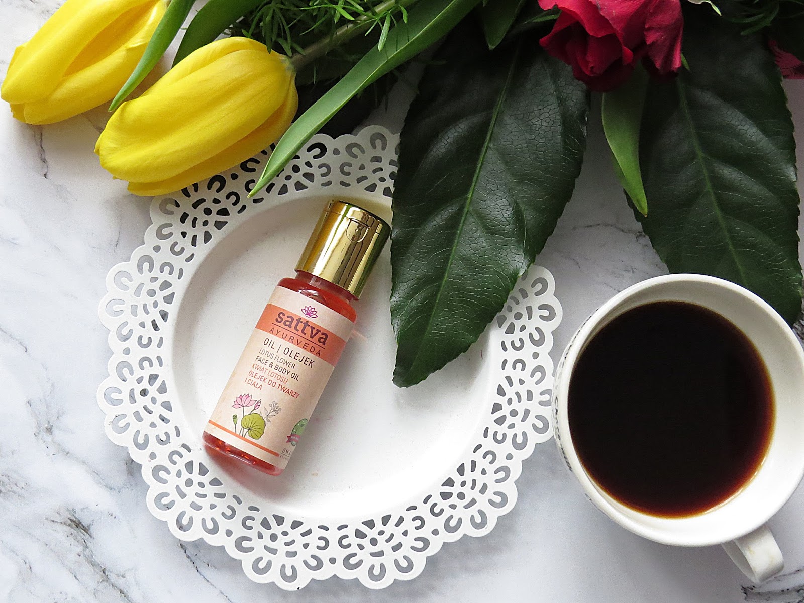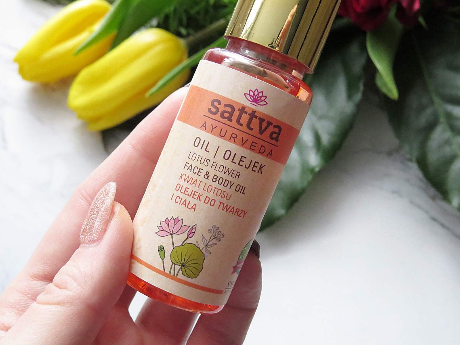 Dzisiaj będzie naturalnie, zaprezentuję Wam produkt, który ostatnio używałam namiętnie i który okazał się zbawienny w kwestii nawilżania skóry po depilacji laserowej. Dobił właśnie denka, więc to najlepszy czas na podsumowanie naszej wspólnej pielęgnacyjnej przygody. Sattva to kosmetyki indyjskie, zawierają w sobie bogactwo ajurwerdyjskich ziół praz przypraw. Kosmetyki są w 100% naturalne, zatem wydaje powinien przypaść do gustu wielu z Was. Nie jestem fanką balsamowania się, ale dla olejków zawsze robię wyjątek, żaden balsam czy masło nie zadba o moją skórę tak dobrze jak oleje. Wychodzę z założenia, że smaruję się raz, a dobrze!