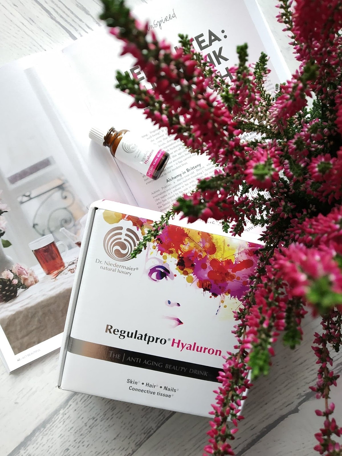 Drink, nazywany jest eliksirem młodości i faktycznie coś jest na rzeczy. Skoro zawiera kwas hialuronowy, który działa jak gąbka, gromadząc duże duże ilości wody w niższych poziomach skóry, tym samym zwieszając jej objętość i wygładzając zmarszczki. Kiedy nasza tkanka łączna jest napełniona kwasem hialuronowym, skóra staje się gładka, promienna i miękka. Ponadto kwas hialuronowy ma także zbawienny wpływ na nasze stawy i powięzi. W młodości przeszłam zapalenie stawów i od tej pory, staram się o nie dbać i stale je wzmacniać.