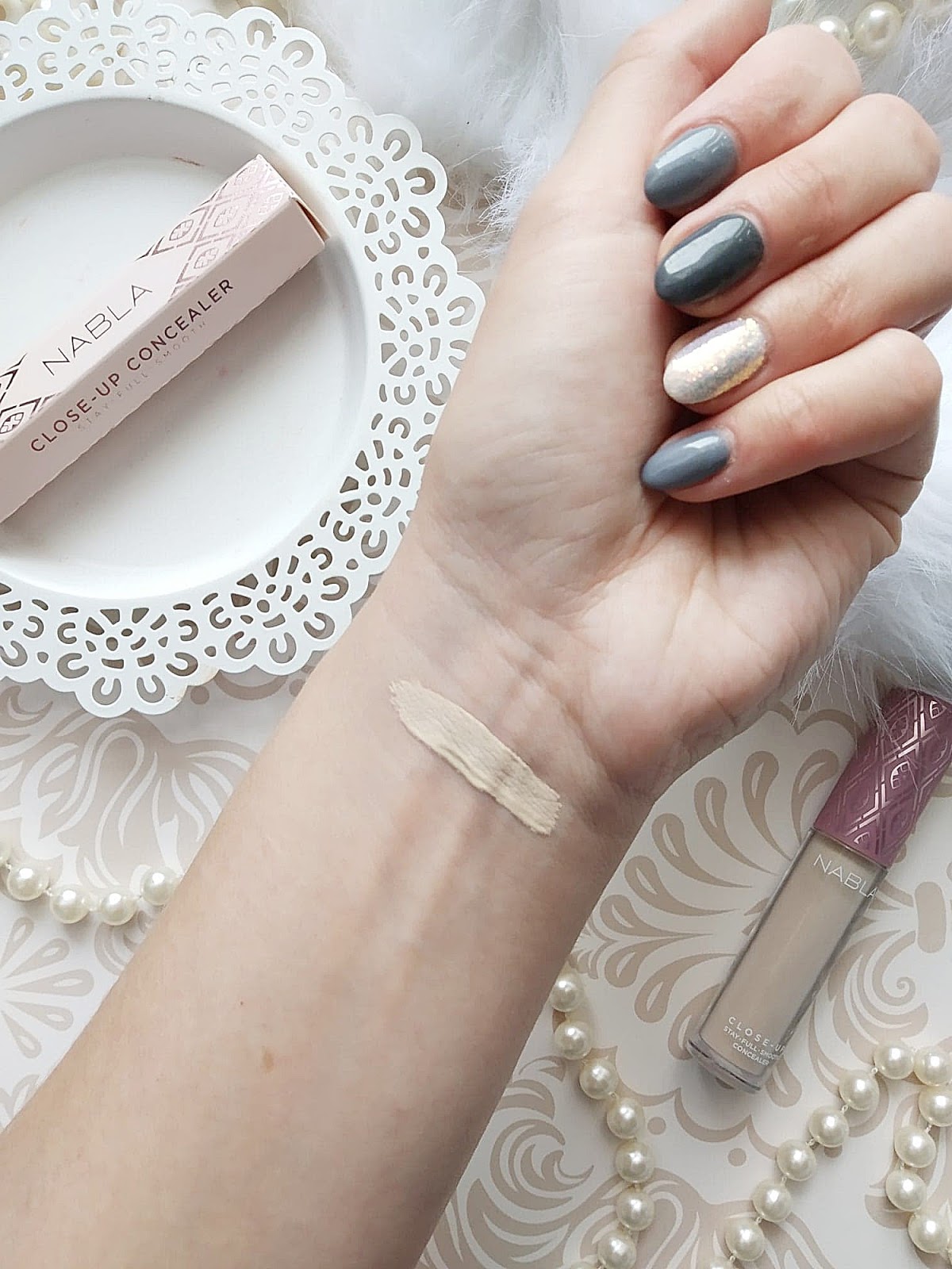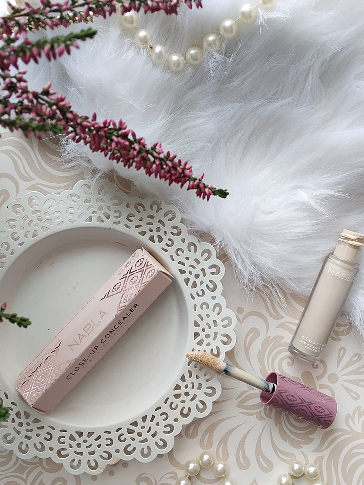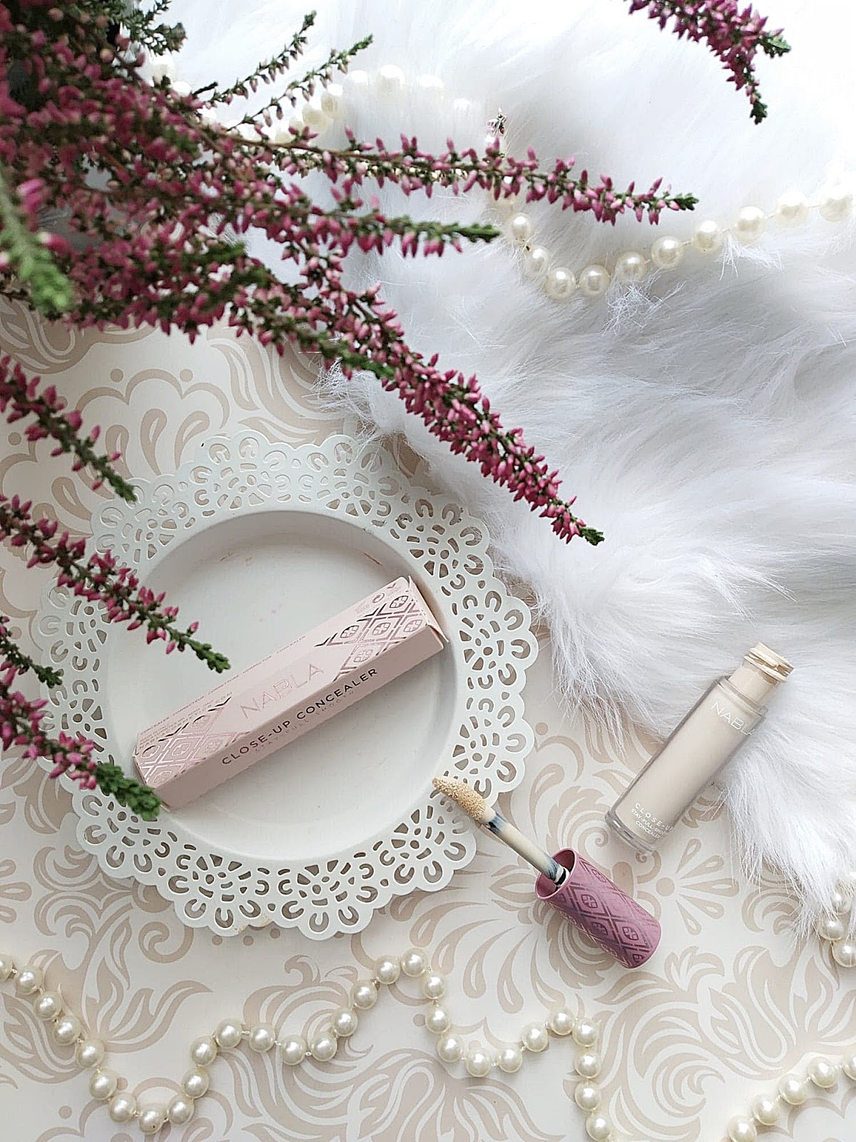 Close Up Concealer, bardzo mnie zaskoczył, ponieważ nie jest tak mocny i kryjący jak się tego spodziewałam. Dlatego wyjątkowo w przypadku tego korektora, nakładam go nieco więcej niż zazwyczaj. Już tłumaczę się dlaczego... Zazwyczaj staram się nałożyć jak najcieńszą warstwę produktu. Ta okolica jest na tyle delikatna i wrażliwa, że nie widzę potrzeby jej dodatkowo obciążać. Ale z Nablą jest inaczej, po nałożeniu i rozprowadzeniu produktu Beauty Blenderem, korektor jest niemal niewidoczny. Tak pięknie stapia się ze skórą, że ma się wrażenie, że niczego się nie nałożyło. Oczywiście ma to swoje plusy i minusy. Dla cer dojrzałych i suchych, będzie to rewelacyjna opcja. Natomiast dla osób borykających się z dużym zasinieniem, korektor może okazać się zbyt delikatny.