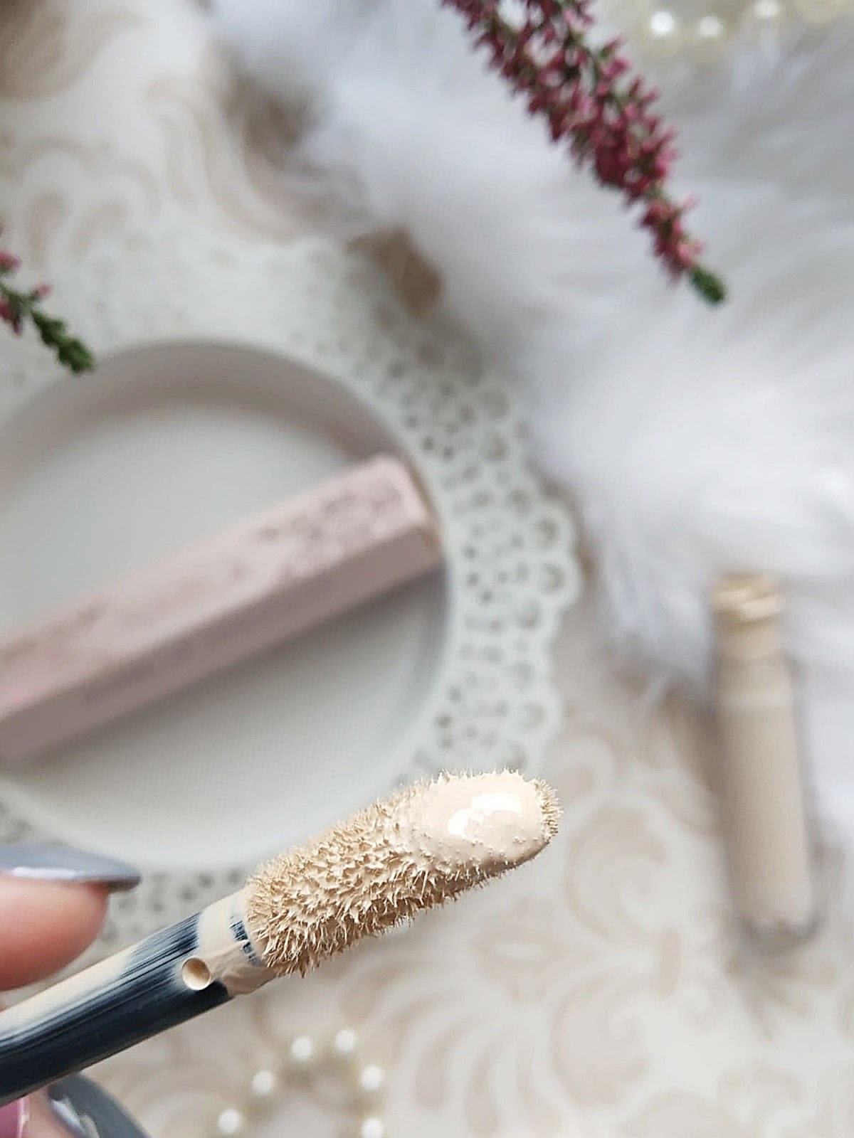 Pierwszym zaskoczeniem, po wyciągnięciu korektora z paczki, okazało się prześliczne opakowanie, utrzymane w kolorze pudrowego różu i napisów rose gold. Pojemność jest standardowa, mam w swojej toaletce, korektory o pojemność 10 i 15 ml więc 4 ml Nabli, są w sam raz. Na pewno aplikator wyróżnia ten korektor spośród innych. Jest to dosyć pokaźnych rozmiarów pacynka ( na szczęście miła i delikatna) która nabiera sporą dozę produktu. Z powadzeniem wystarcz mi to aby pokryć okolice pod oczami, zazwyczaj nakładam minimalną ilość korektora, ale Nabla wyróżnia się na tym tle...
