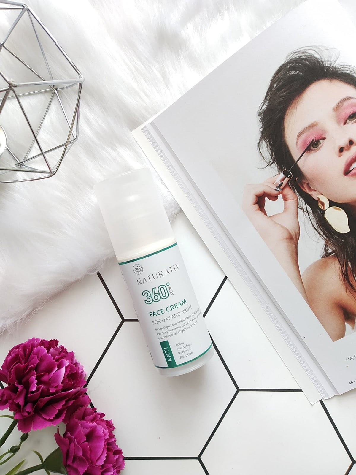 Na końcu produkt, który z pewnością mogę nazwać wisienką na torcie. NATURATIV 360°AOX KREM DO TWARZY DZIEŃ/NOC To produkt na widok, którego cała się rozpromieniłam. To bardzo dobry krem o którym słyszałam wiele dobrego, bogactwo składników aktywnych w tym kremie, sprawia, że już mnie świerzbią ręce, aby jak najszybciej się do niego dobrać. Krem zawiera kompozycję trzech tłoczonych na zimno olejów: wiesiołkowego, winogronowego i z lnianki siewnej. Krem ma za zadanie opóźniać procesy starzenia oraz regenerulować, łagodzić, nawilżacie stymululować procesy naprawcze w skórze, m.in. regulujących prace gruczołów łojowych. Bogaty w BIO ekstrakty: z miłorzębu japońskiego, kwiatów kocanki i cytryny. Wspomagają działanie antyoksydacyjne, wzmacniają naczynka, działają naprawcze i rozjaśniające. Kwas hialuronowy chroni cerę przed przesuszeniem, wygładza naskórek. Oczywiście naturalny i wegański. Pokładam w nim wielkie nadzieję i na pewno ten krem doczeka się osobnej recenzji. Produkt pełnowymiarowy uwaga na cenę ( 192 zł/ 100 ml)