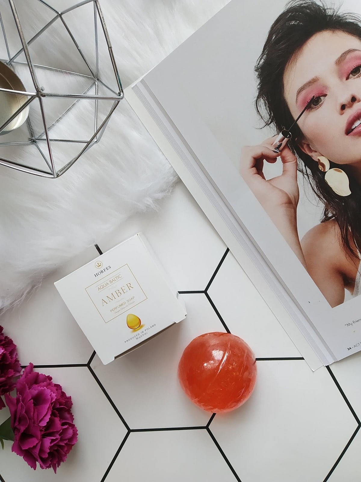 Kolejny produkt to dla mnie duża nowość, przyznaję, że rzadko sięgam po mydła, ale to jest intrygujące. Pierwszy raz słyszę o mydle uzyskiwanym z bursztynu, produkt jest tym bardziej wyjątkowy, że jest to polska marka (HORFES AQUA BALTICA ) specjalizująca się w złotnictwie i kosmetykach z bursztynem (w ofercie są peelingi, olejki, sole do kąpieli) W mydle znajdziemy 10% aktywny wyciąg z bursztynu oraz inne mineralne i naturalne składniki. Produkt pełnowymiarowy (19 zł / szt) Musze Wam zdradzić, że mydełko pachnie obłędnie <3