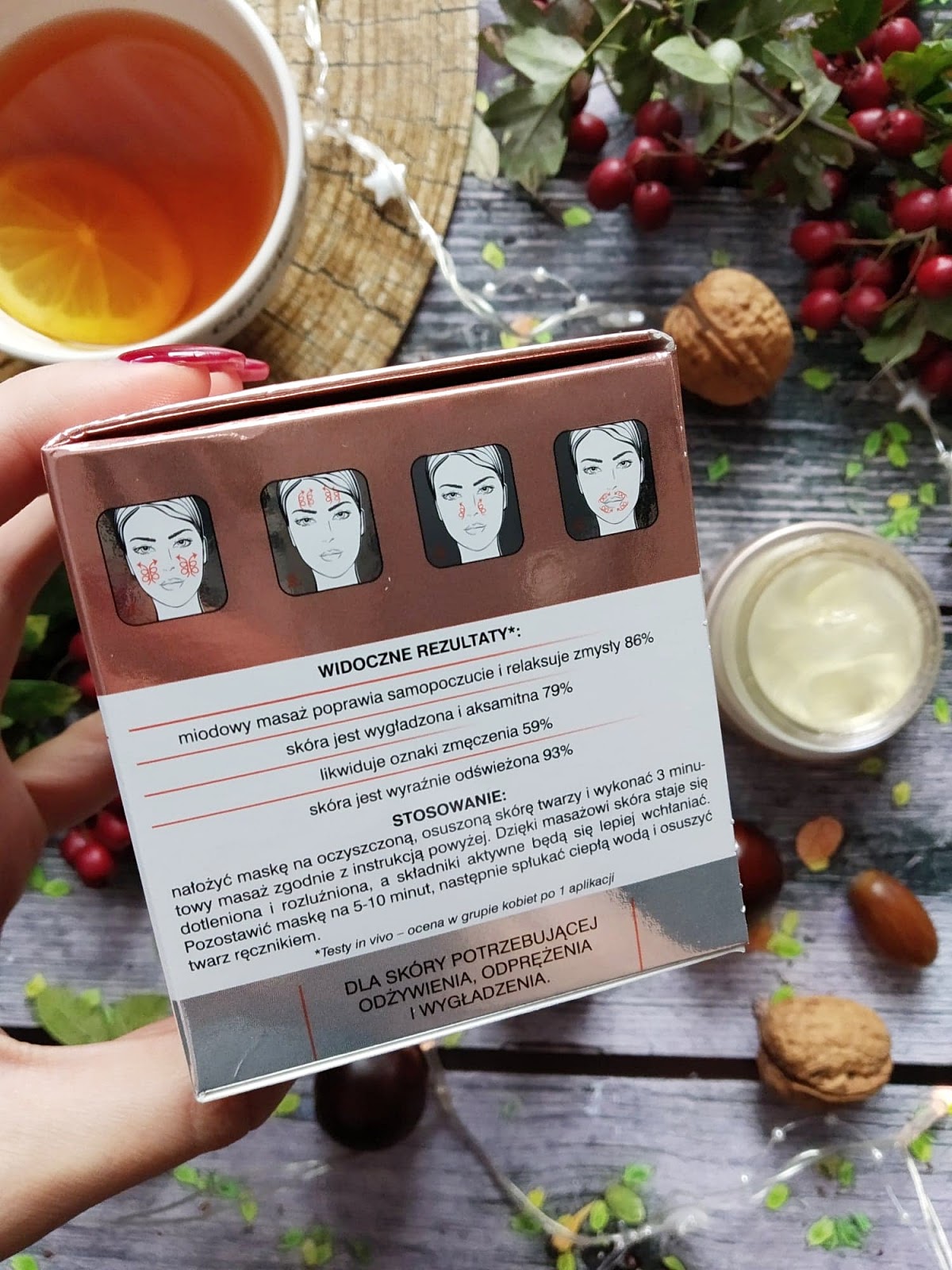 Przy regularnym stosowaniu (2 razy w tygodniu) zauważyłam, znaczną poprawę w wyglądzie mojej skóry. Przede wszystkim skóra jest nawilżona, wygładzona i lekko rozświetlona. Wygląda na wypoczęta i zdrową. Miodowo-olejowy kompres jest wspaniałym zabiegiem relaksacyjnym, który szybko stał się moim małym uzależnieniem. W zasadzie czekam na moment, aby móc wykonać ten krok w mojej wieczornej pielęgnacji.