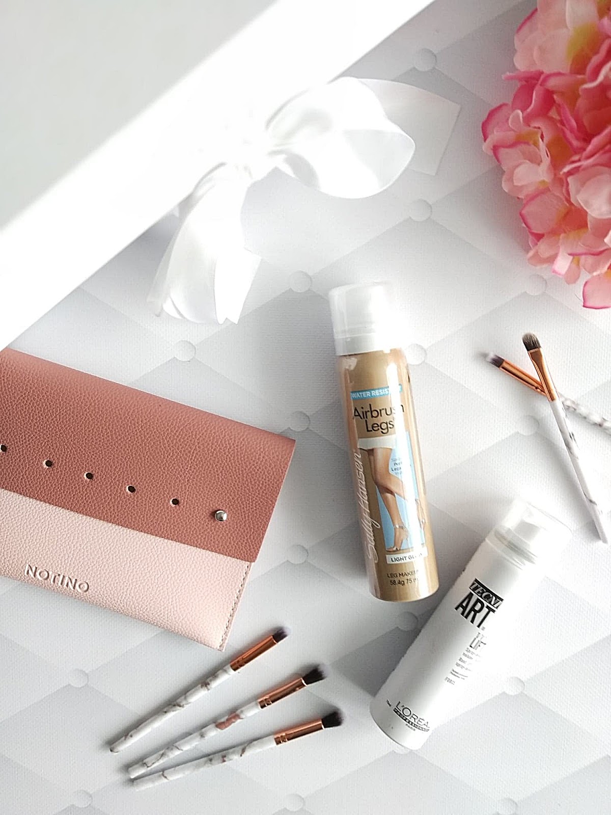 Kosmetyczka, która idealnie sprawdzi się do torebki, jest zgrabna i nie zajmuje dużo miejsca. Ponadto spray Loreal dodający włosom objętości i coś co jest moim hitem każdych wakacji to rajstopy w sprawy marki Sally Hansen. Jeśli jeszcze ich nie miałyście to koniecznie musicie sprawdzić. Dodają skórze zdrowego wyglądu, ujednolicają strukturę, zakrywają drobne pajączki, czy siniaki.