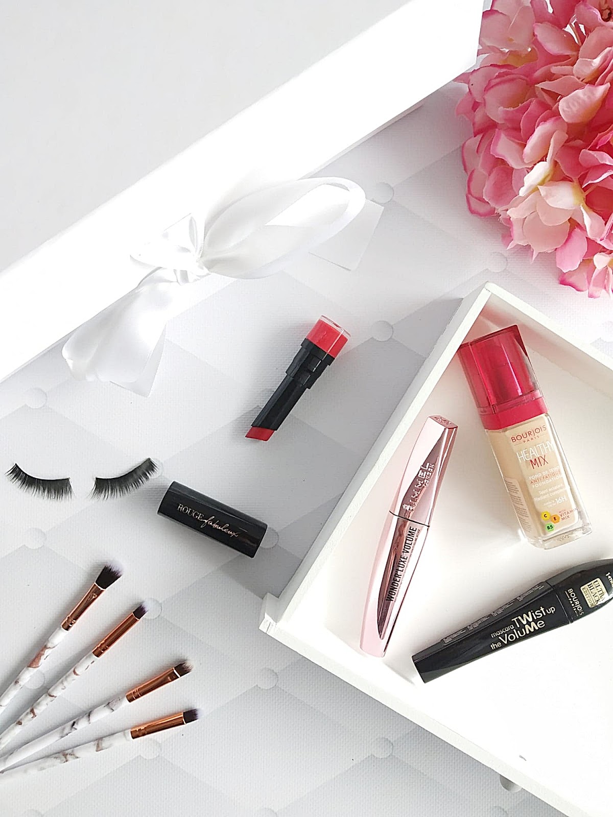 Coś do makijażu, zawsze i każdemu się przyda. Tym bardziej, że przysłano mi podkład Bourjois w idealnym dla mnie odcieniu :) Ponadto dwa tusze, które uwielbiam testować i na pewno zużyję z ogromną przyjemnością, a także czerwoną pomadkę do ust, klasyk w każdej toaletce.