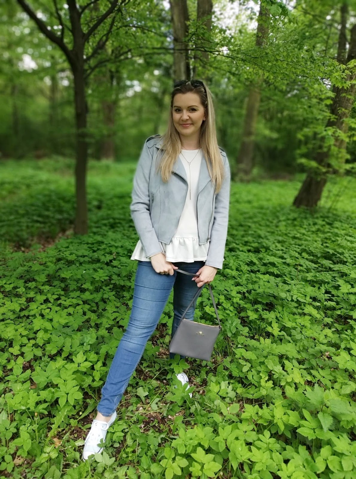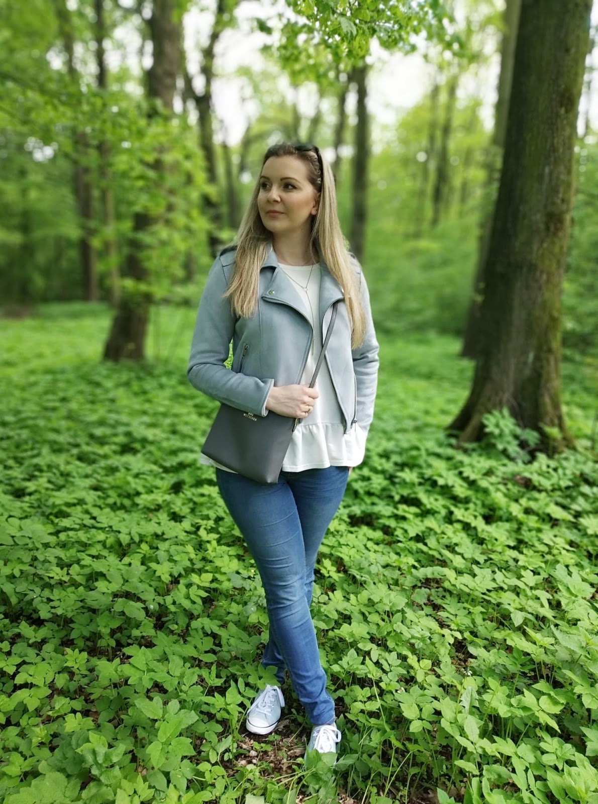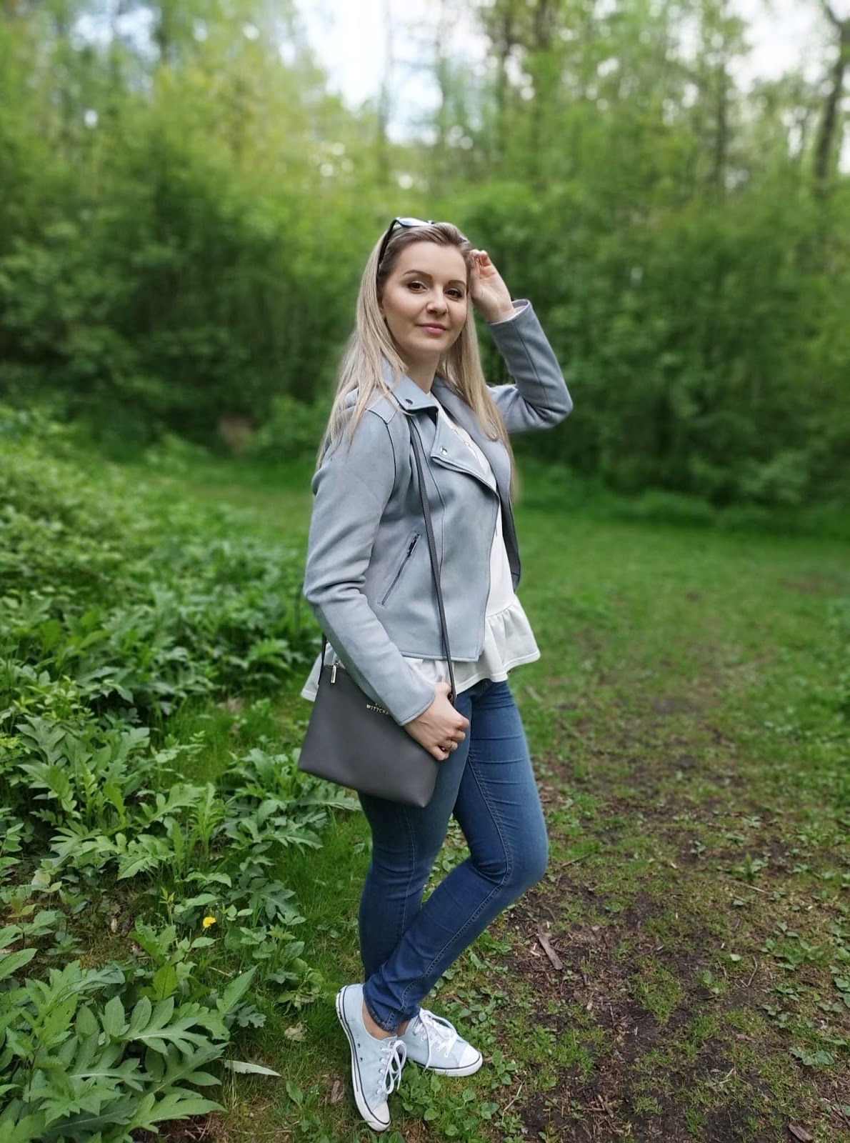 Nie trudno zauważyć, że dominuje tu niebieski, szarości biel podstawowe barwy mojej garderoby. Są łatwe do zestawiania i pasują blondynom. Do tego niezastąpione Conversy, małą torebka i można udać się na szybki spacer za miasto. Nie odczuwam potrzeby przesadnego strojenia się na spacer, czy wypad za miasto, ale co kto woli ;)