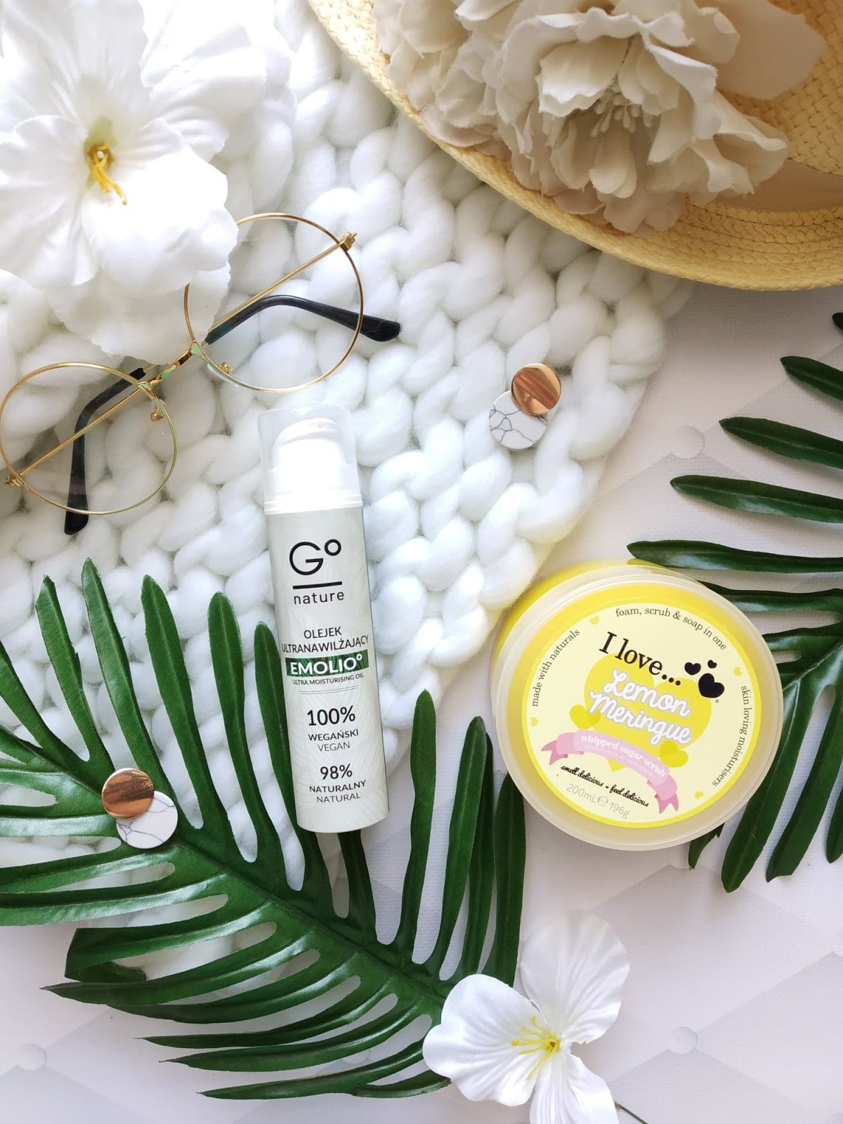 Na początek produkt, który bardzo mnie zaintrygował Go Nature, to ultranawilżający olejke do ciała. Został on stworzony z myslą o osobach ze skóra sucha, atopową, wrażliwą i delikatna. Idealnie sprawdzi sie do pielęgnacji kobiet w ciąży, małych dzieci i niemowląt. Olejek zawiera 98% składników natualnych np masło shea, olej migdałowy i oliwa z oliwek. Produkt jest wegański!