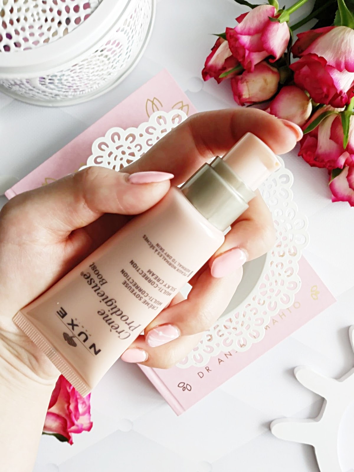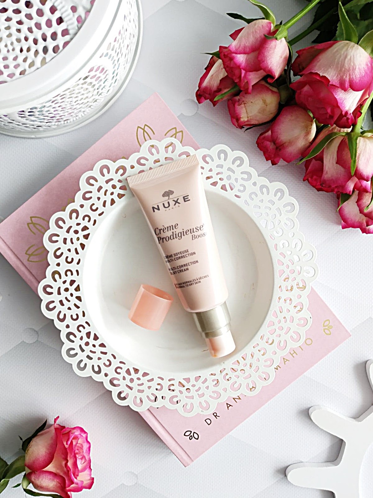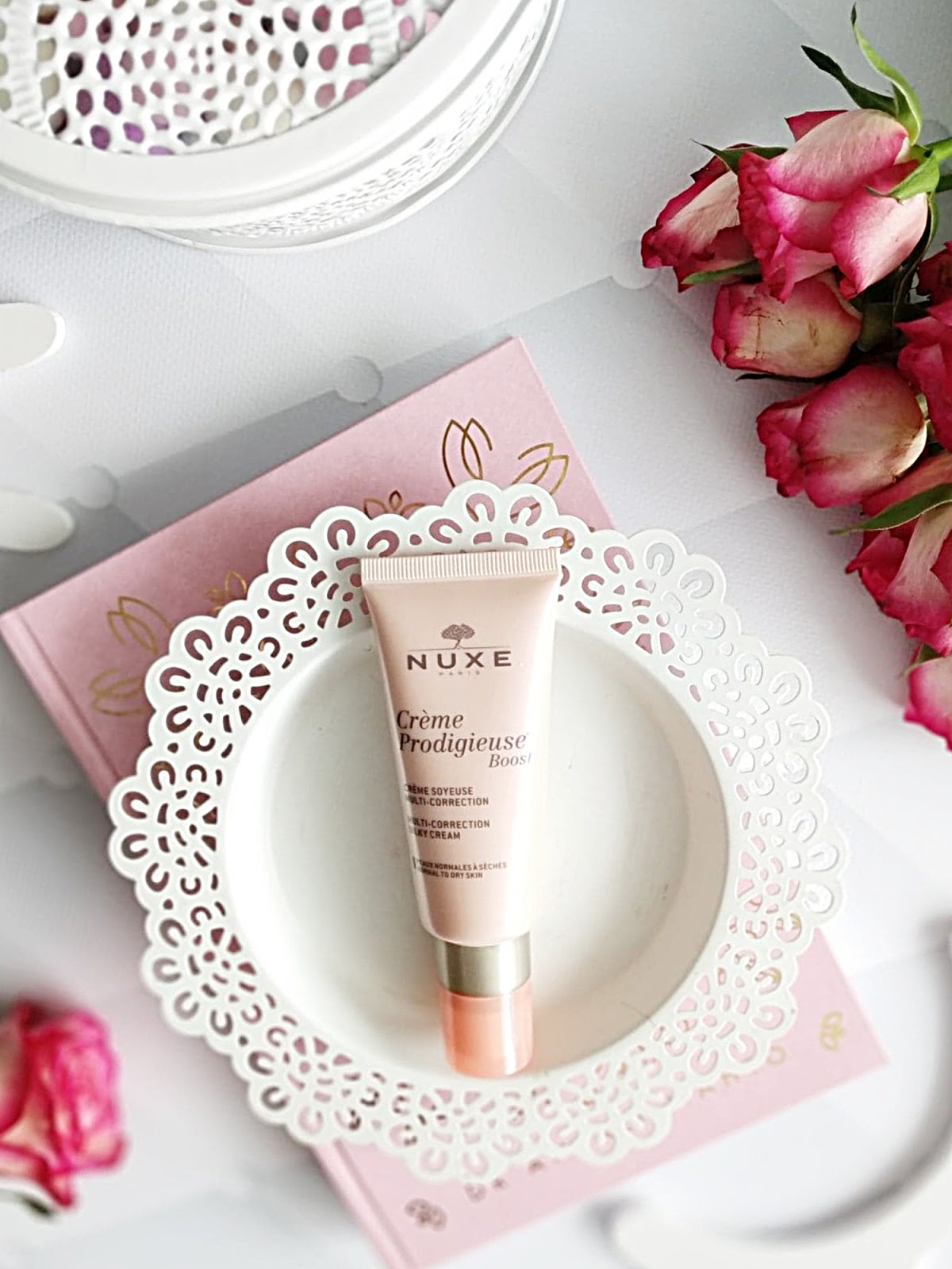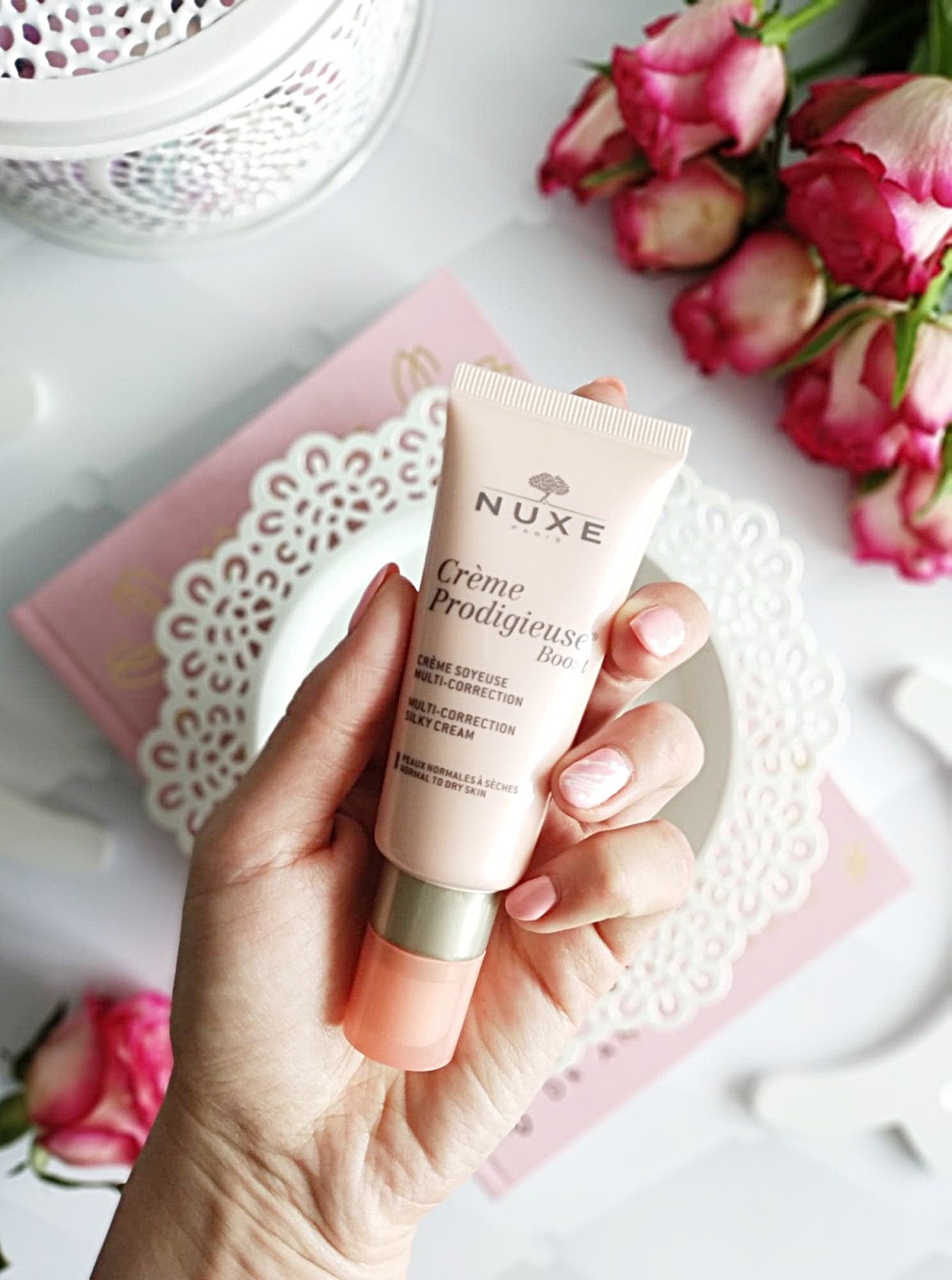 Ostatnio moja cera nie ma łatwego życia, zmiany hormonalne jakie w niej zachodzą, dają się we znaki. Są dni, kiedy moja skóra prezentuje się nienagannie, rezygnuję wówczas nawet z makijażu. Jest zdrowa, gładka i promienna. Niestety są też okresy, w których jest zanieczyszczona, zapchana, lub ekstremalnie przesuszona i ziemista. Znalezienie odpowiedniego kremu, nie jest łatwym zadaniem. Będąc w ciąży muszę wystrzegać się wielu składników i jeszcze mocniej zwracać uwagę na swoją pielęgnację. Wróciłam do korzeni i sięgnęłam po markę Nuxe, nigdy mi nie szkodziła, pomyślałam, może tym razem też pomoże?! I tak oto zabrałam się za testowanie Crème Prodigieuse Boost...