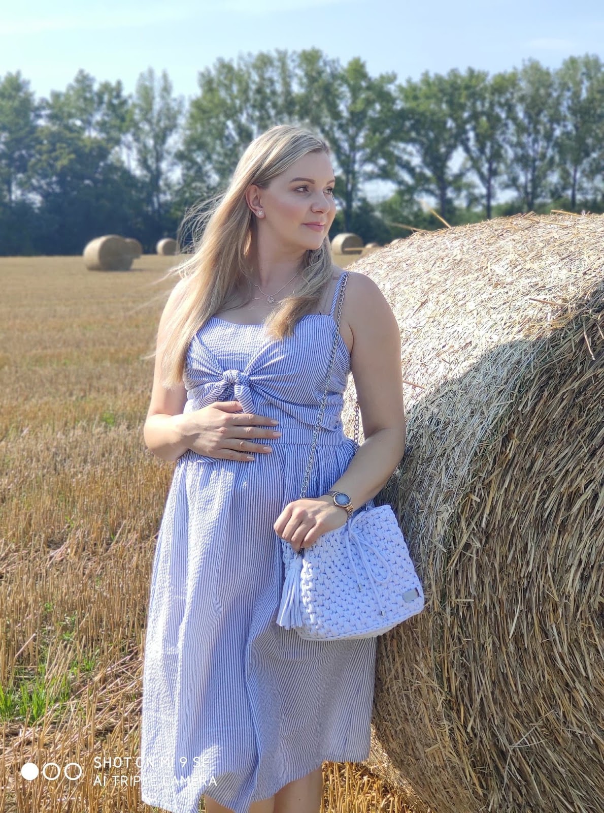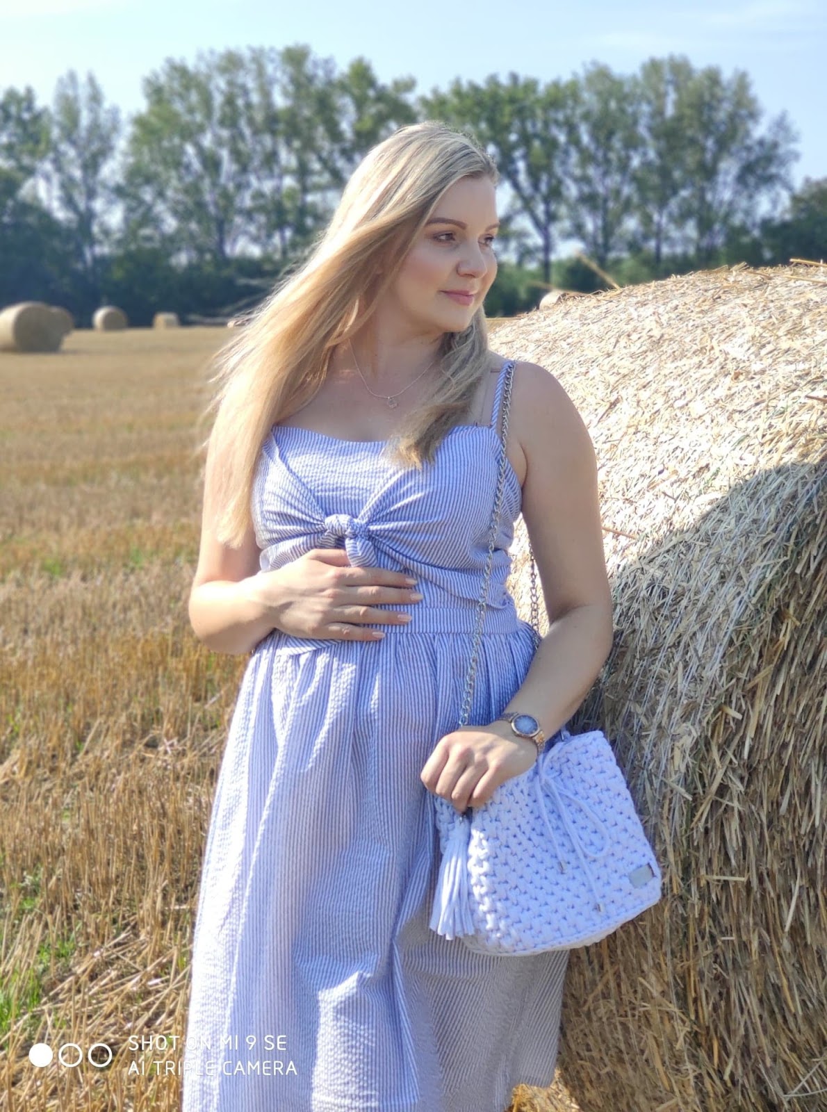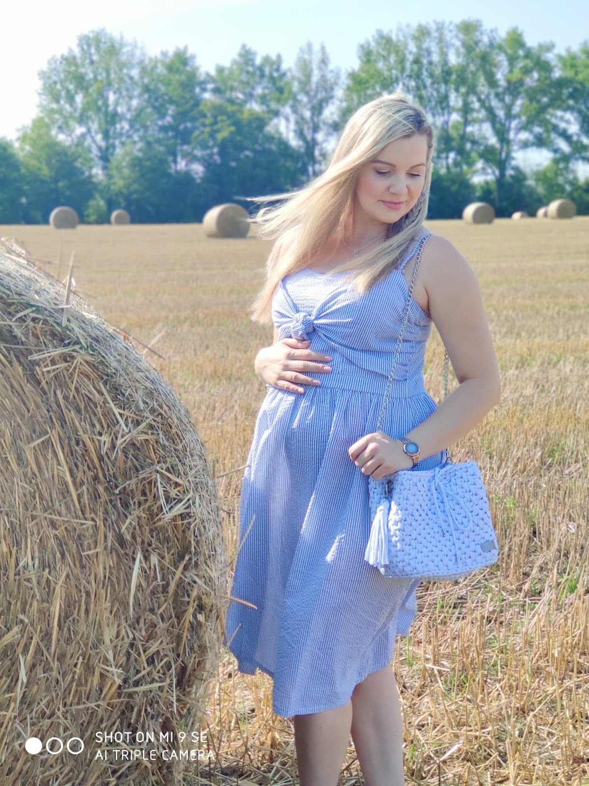 Sama sukienka jest bardzo dziewczęca, ja lubię takie styl i dobrze się w nim odnajduję, poza tym jest w moim ukochanym błękitnym kolorze. Teraz mój brzuszek spokojnie się w niej mieści i jest mi bardzo wygodnie. W takich stylizacjach, warto zwrócić uwagę na dodatki bransoletki, wisiorki, kapelusze, a jeśli tego nie lubicie, postawcie na unikatową torebkę.