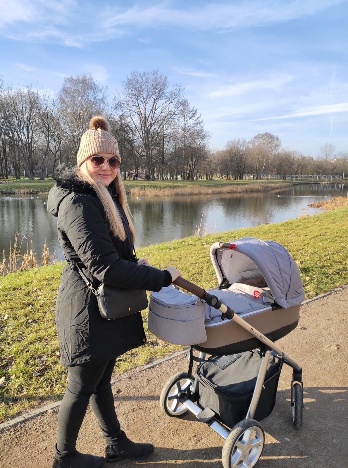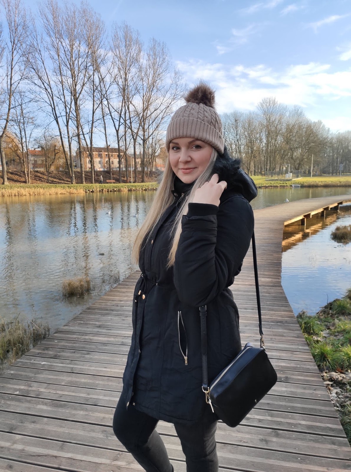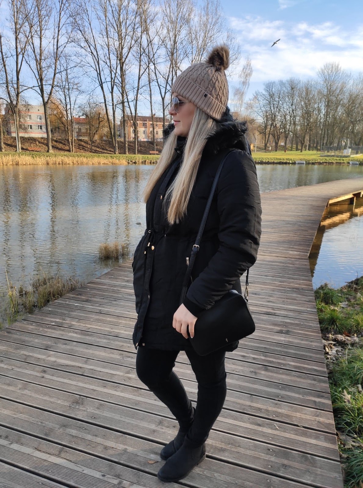 Dawno nie pokazywałam tutaj żadnej "stylizacji" chociaż w moim wypadku, trudno mówić o specjalnym stylizowaniu się. Fakt lubię ubrania i lubię dobrze wyglądać, ale lubię być sobą. Dlatego ubieram się, a nie przebieram. Zwłaszcza teraz kiedy zostałam mamą, stawiam na wygodę, spacer po parku to nie miejsce na szpilki i koronkową sukienkę, zwłaszcza w obecną porę roku. Będąc jeszcze w ciąży postanowiłam sobie, że po porodzie zrobię duże zakupy i odświeżę garderobę. I muszę powiedzieć, że szybko przystąpiłam do działania. Musiałam się jakoś dopieścić, poza tym nie będę ukrywać... jeansy czarodziejsko się skurczyły, zatem nie było innego wyjścia :) Jedną z rzeczy, która wpadła w moje ręce podczas zakupów była czarna, klasyczna parka, która szybko skradła moje serce. Wygodna, ciepła i można ją fajnie wystylizować. Idealna na spacery, bo lekka wygodna i funkcjonalna. Rośnie ze mną, dzięki sznurkowi w talii mogę tyć i chudnąć do woli :)