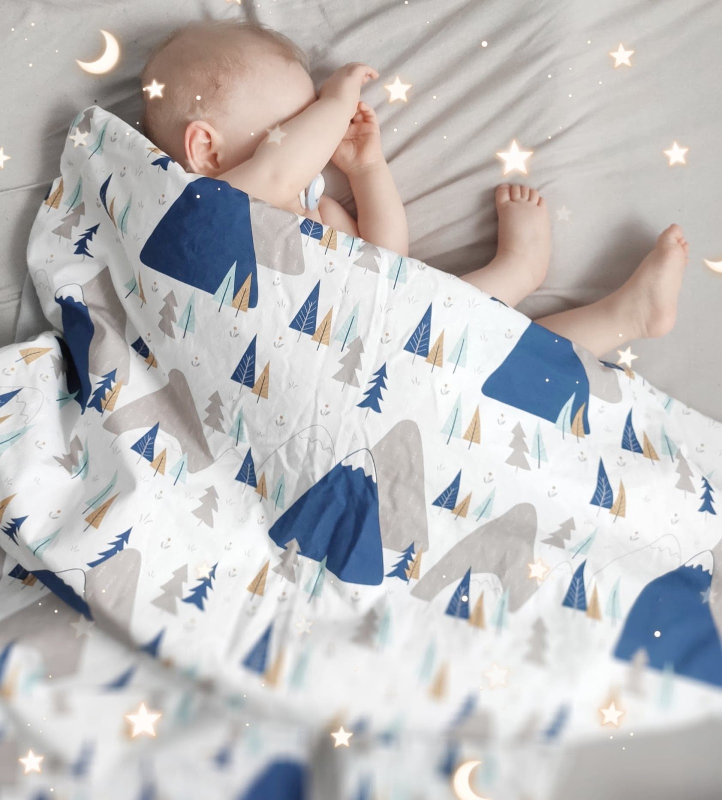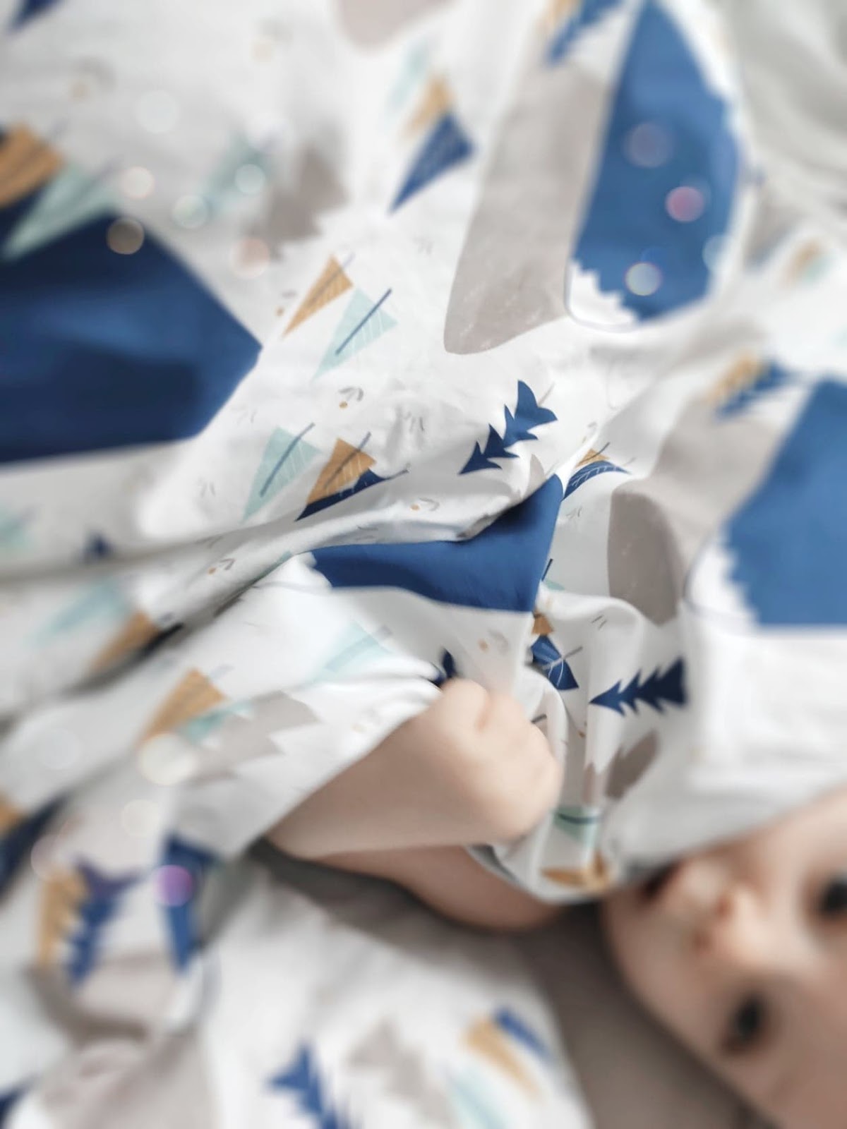 Wzór Mountain Adventure dostępny jest tylko w sklepie Mulinek, został on zaprojektowany przez projektanta. Inspiracją, były wycieczki po górach, wzór przedstawia pasma górskie i magiczny las. Idealny wzór dla małego chłopca. odkrywcy i marzyciela. Ileż cudownych przygód można wyśnić pod taką kołderką. Jest naprawdę piękna, dobrze się pierze, dość szybko schnie i jest lekka.