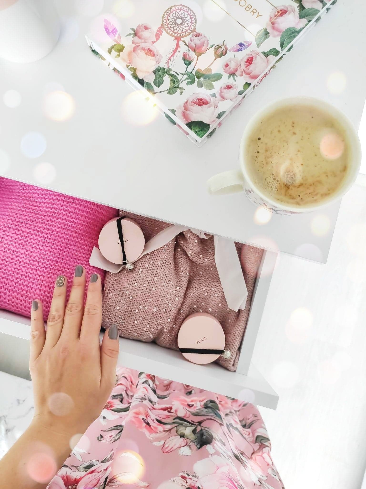 Szafa jest ogromna i przyznaję się, że mam bardzo dużo ubrań, no cóż nikt nie jest idealny. Natomiast komoda, pomimo tego, że ma dość małe wymiary jest bardzo pojemna. Każda szuflada jest już zapełniona. Trzymam w niej ubrania, biżuterię, bieliznę i zapas kosmetyków do testów (może jedynie ta szuflada trudniej się domyka ;) Lubię stawiać na niej, kilka bibelotów, kwiaty, ulubione perfumy, czy notes. Wszystko mam pod ręką, kiedy się szykuje, lub kiedy chcę odpocząć i rozplanować działania.