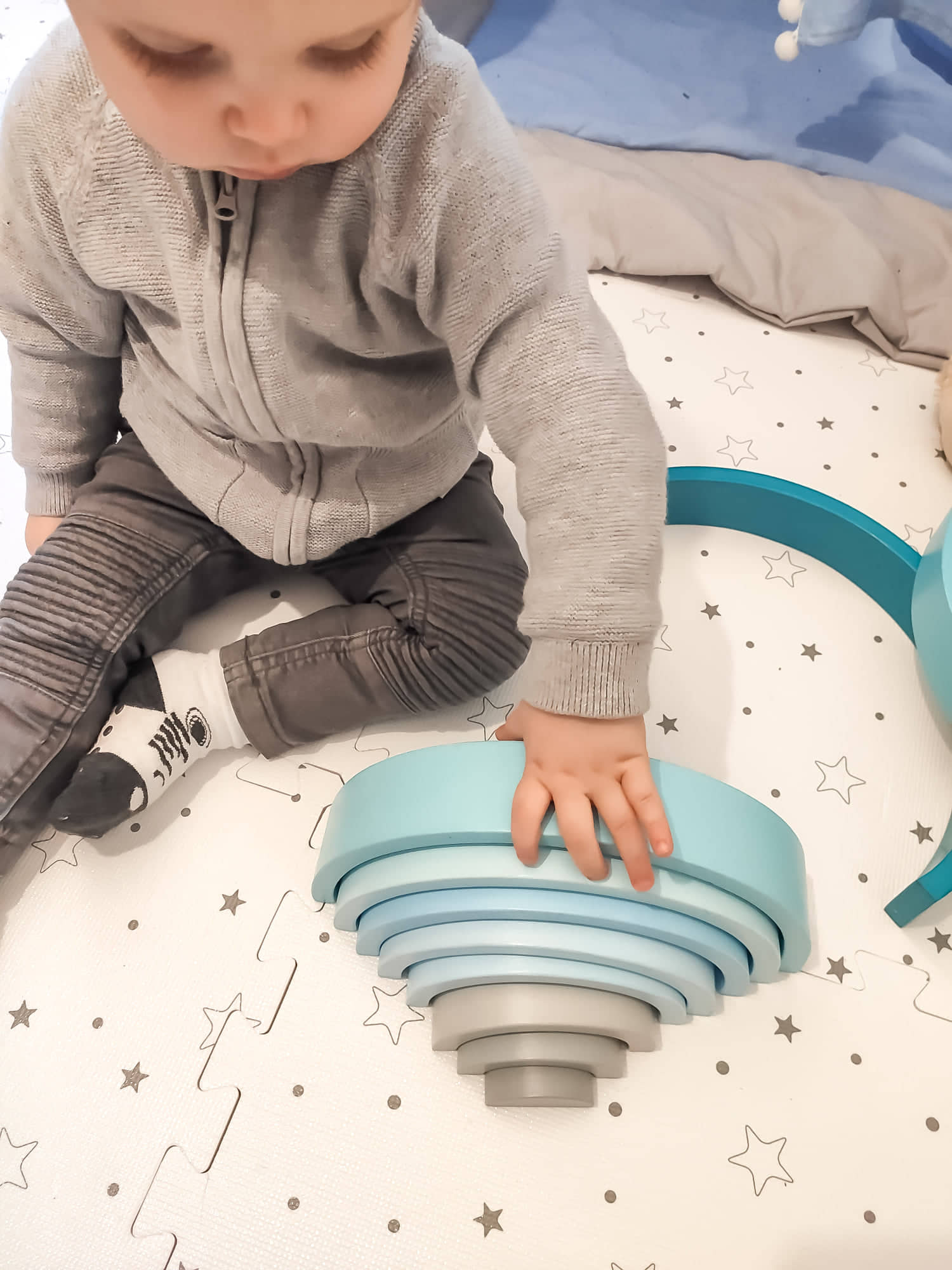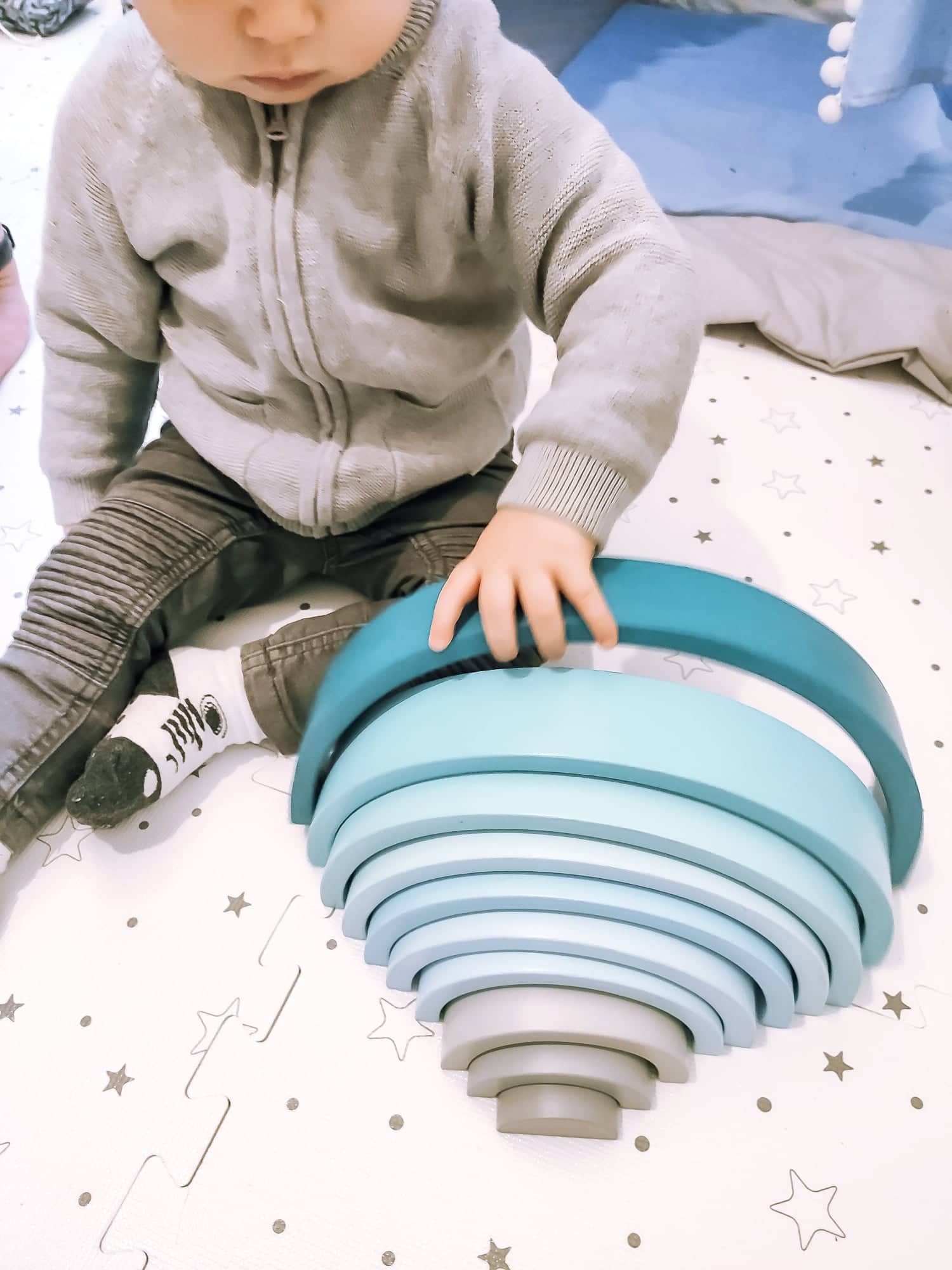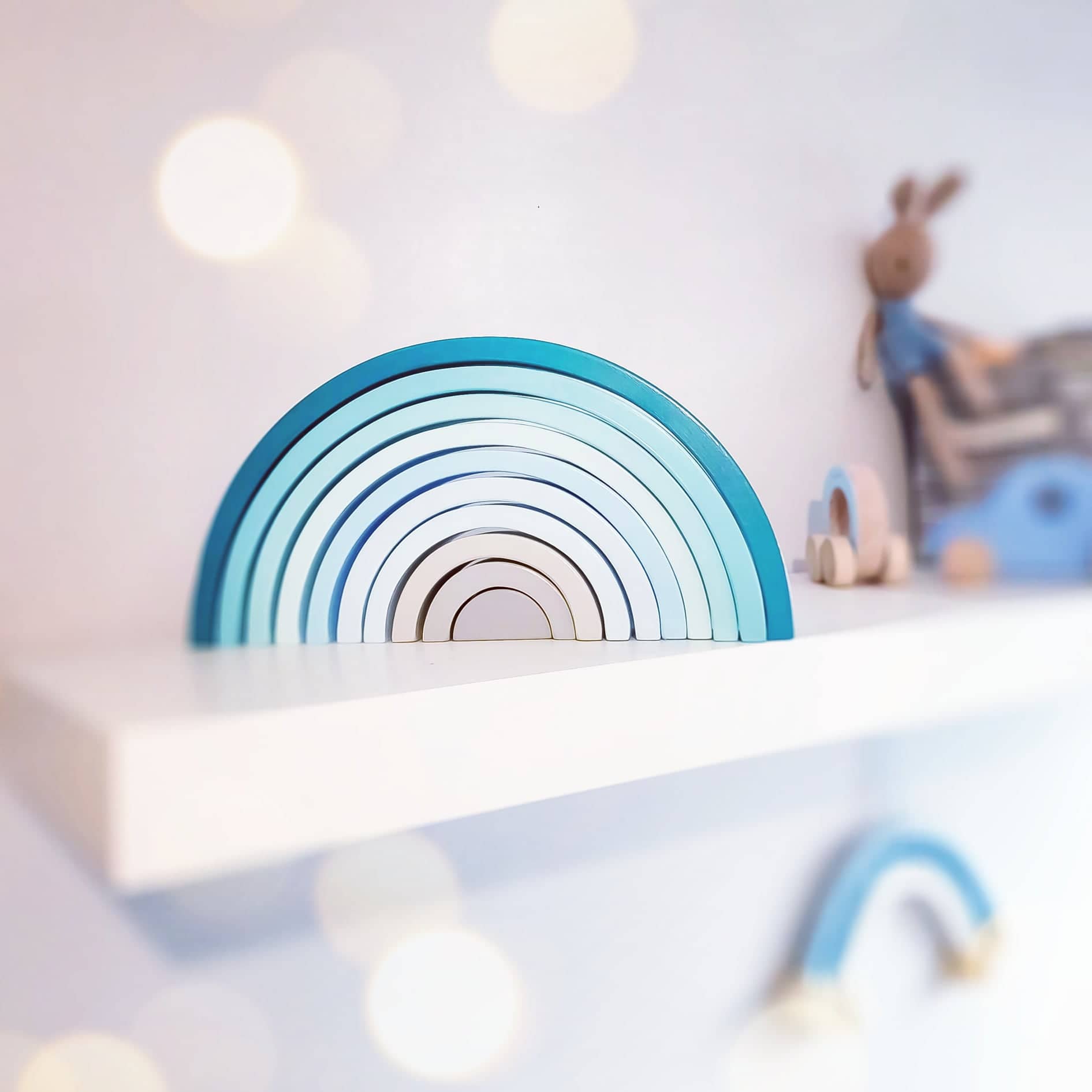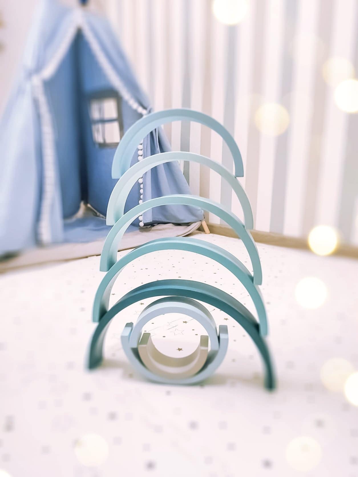 Ta tęcza w całości wykonana jest ręcznie, dacie wiarę? Tym bardziej cieszy mnie fakt, że mamy ją w swoim posiadaniu. Uwielbiam małe manufaktury, które tworzą swoje produkty z ogromnej pasji i z wielkim zaangażowaniem. Ogromne uszanowanie dla Woodenhandmadelittlething za to jakie piękne i kreatywne zabawki tworzą.
