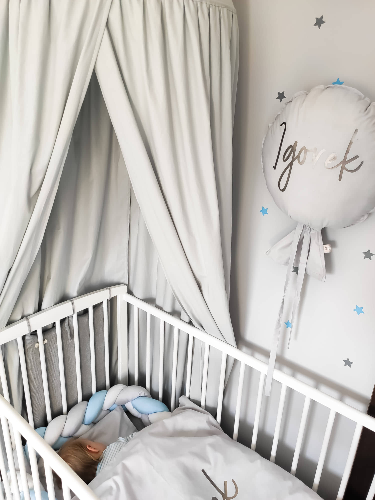 pokój dziecięcy to wyjątkowe miejsce w domu. Ma ono magiczne moce, to tam spędzamy najwięcej czasu i każdy z nas powinien czuć się w nim dobrze. Starałam się urządzić go tak żeby był przytulny chciałam żeby Igorek nocując sam czuł się bezpiecznie otoczony pięknymi, przyjaznymi mu dodatkami. Jednocześnie daleko mi do krzykliwych i grających dodatków. Kocham pastele, drewno i niebanalne dekoracje. I kiedy moim oczom ukazał się personalizowany balonik wiedziałam, że to jest to! Bardzo gustowny, minimalistyczny dodatek. Balon może posłużyć nam jako tradycyjna poduszka lub dekoracja pokoju dziecięcego. U mnie ma zamienne zastosowanie i miejsce bytowania. Dodatkowym atutem jest możliwość stworzenia napisu, co czujni balonik jeszcze bardziej unikatowym.