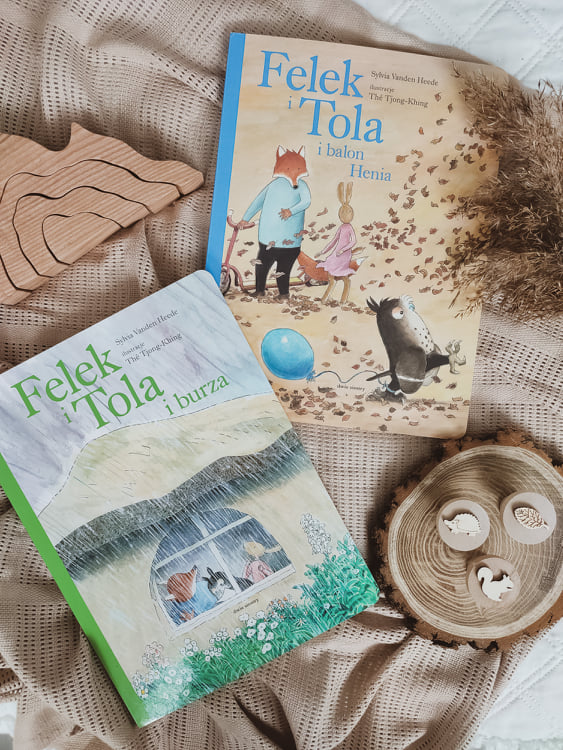 Znałam tę serię dla nieco starszych dzieci, które już samodzielnie czytają. I tutaj należą się wielkie ukłony dla wydawnictwa za przygotowania Felka i Toli w wersji kartonowej. Teraz i młodszy czytelnik będzie mógł zapoznać się z tą serią. Duży format, kartonowe strony to wszystko sprzyja sięganiu po tę pozycję z półki. Seria opowiada o trójce przyjaciół lisku łasuchu Tolku, rezolutnej króliczce Toli i ich sąsiedzie Heniu, który jest puchaczem. W księżach znajdziemy proste opowiastki, z małą ilością tekstu na jednej stronie, a to wszystko w pięknie ilustrowanej odsłonie. Mój synek umiłował sobie Henia i teraz każda wyprawa do lasu to jego poszukiwania. Bardzo lubimy tę serię, kiedy do niej siadamy czytamy wszystkie cztery części. Jestem przekonana, że szybko polubicie tych bohaterów, równie mocno jak my!