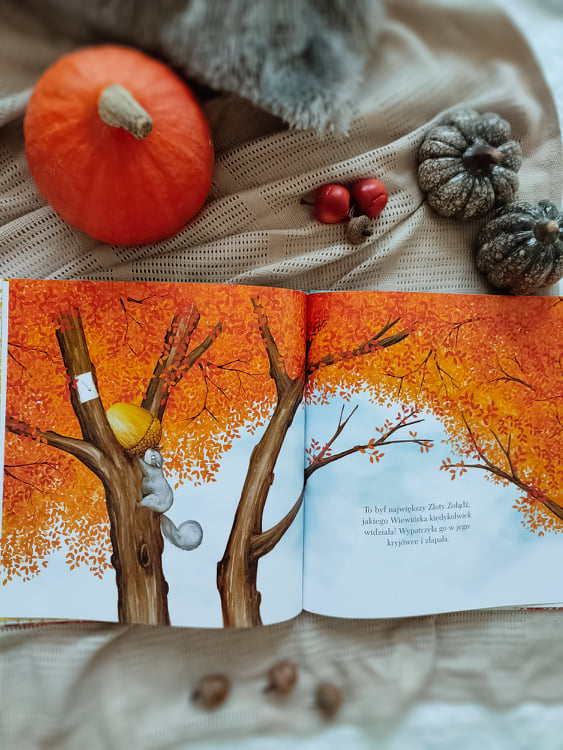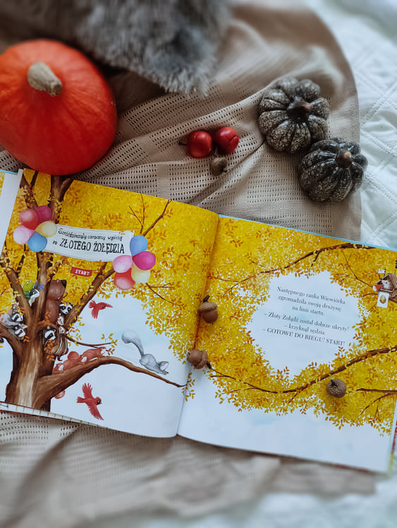 To jedna nowszych pozycji w naszej biblioteczce, która szybko skradła nasze serca. Główną bohaterką, jest wiewiórka, - typ zadaniowca i zwycięzcy. Każdego roku wygrywa wyścig po złotego żołędzia i z niecierpliwością czeka na kolejne trofeum. Jednak nowy regulamin krzyżuje jej plany. Z dnia na dzień indywidualistka musi współpracować z drużyną w której skład wchodzą jej przyjaciele niekoniecznie tak szybcy i doświadczeni jak ona Czego nauczy się Wiewiórka? Czy zdobędzie złotego żołędzia? Co w tym wyścigu okaże się najważniejsze? To zabawna opowieść, okraszona pięknymi, jesiennymi ilustracjami. Pokazuje nam co tak naprawdę jest najważniejsze i że przyjaciele to największy skarb. "Wyścig po złotego żołędzia" pozycja obowiązkowa tej jesieni :)