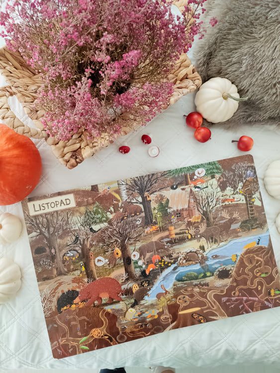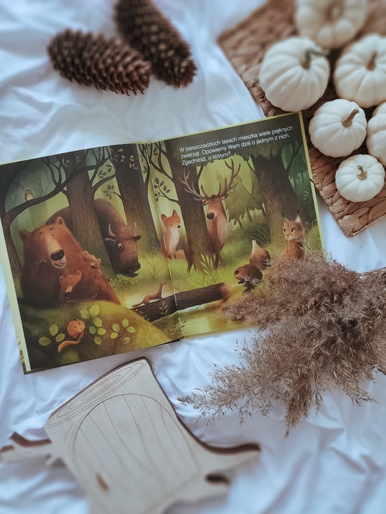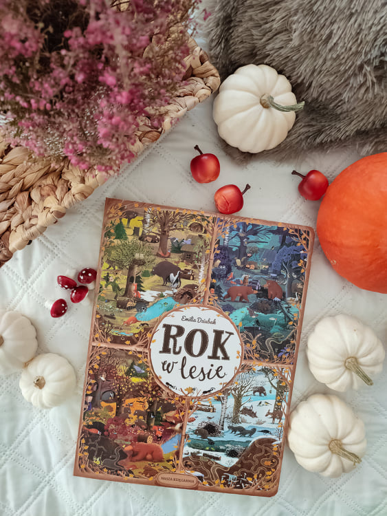 To kolejna książka typu wyszukiwanka, która pokazuje nam rok z życia lasu i wszystkich jego mieszkańców. Poznajemy różne gatunki zwierząt ich zwyczaje i miejsce bytowania. Książka ta jest źródłem wiedzy i odpowiedzią na zadawane pytania. Lubimy sprawdzać co słuchać u poszczególnych gatunków kto poluje, kto zapadł już w sen zimowy, a kto gubi poroże. " Rok w lesie" to niesamowita przygoda fascynujący świat lasu, który dosłownie porywa. Możemy skupić się na danym miesiącu lub oglądać całościowo śledząc losy poszczególnych zwierząt ma przestrzeni roku. Książka może posłużyć jako baza do różnych kreatywnych zabaw. Polecam także do kompletu puzzle i grę memory. Idealny zestaw na jesienny wieczór.