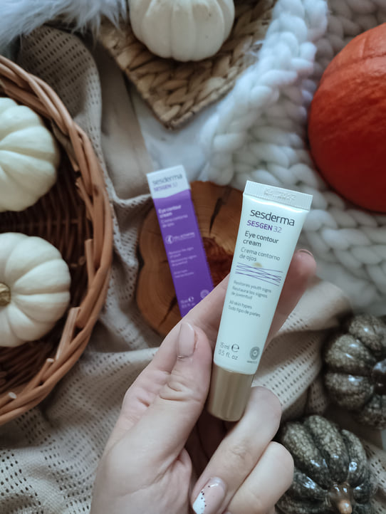 Po raz kolejny sięgnęłam po krem marki Sesderma, mam do tej firmy ogromny sentyment i chętnie wracam do ich kosmetyków. Sesgen 32 to krem, który obecnie stosuję na moją okolicę oczu. Głównym składnikiem jest temprenon, który spowalnia starzenie się komórek, wydłużając ich życie o jedną trzecią. Sesgen 32 stymuluje mikrokrążenie, co skutkuje zniwelowaniem cieni pod oczami, ponadto sprawia, że opuchnięcia znikają. Skóa wygląda na wypoczętą, młodszą i bardziej odżywioną. Zawarty w kremie czynnik liftingujący DMAE zapobiega wiotczeniu skóry. Dodatkowo w składzie znajdziemy kwas hialuronowy, masło Shea, oraz olej arganowy, które nawilżają, i odżywiają skórę pod oczami