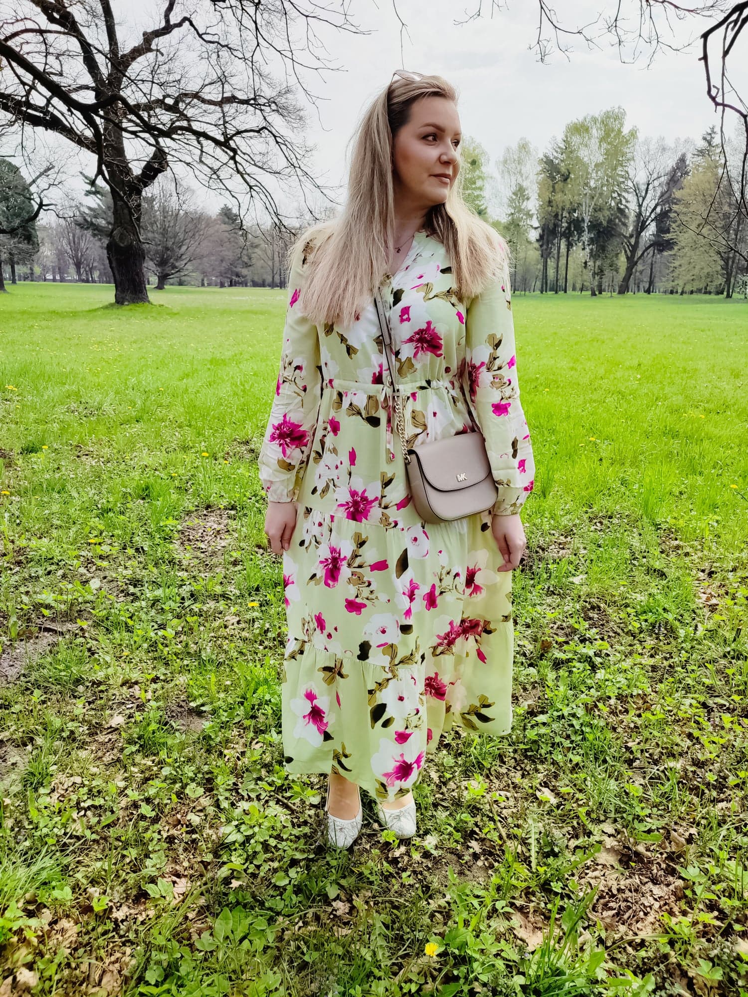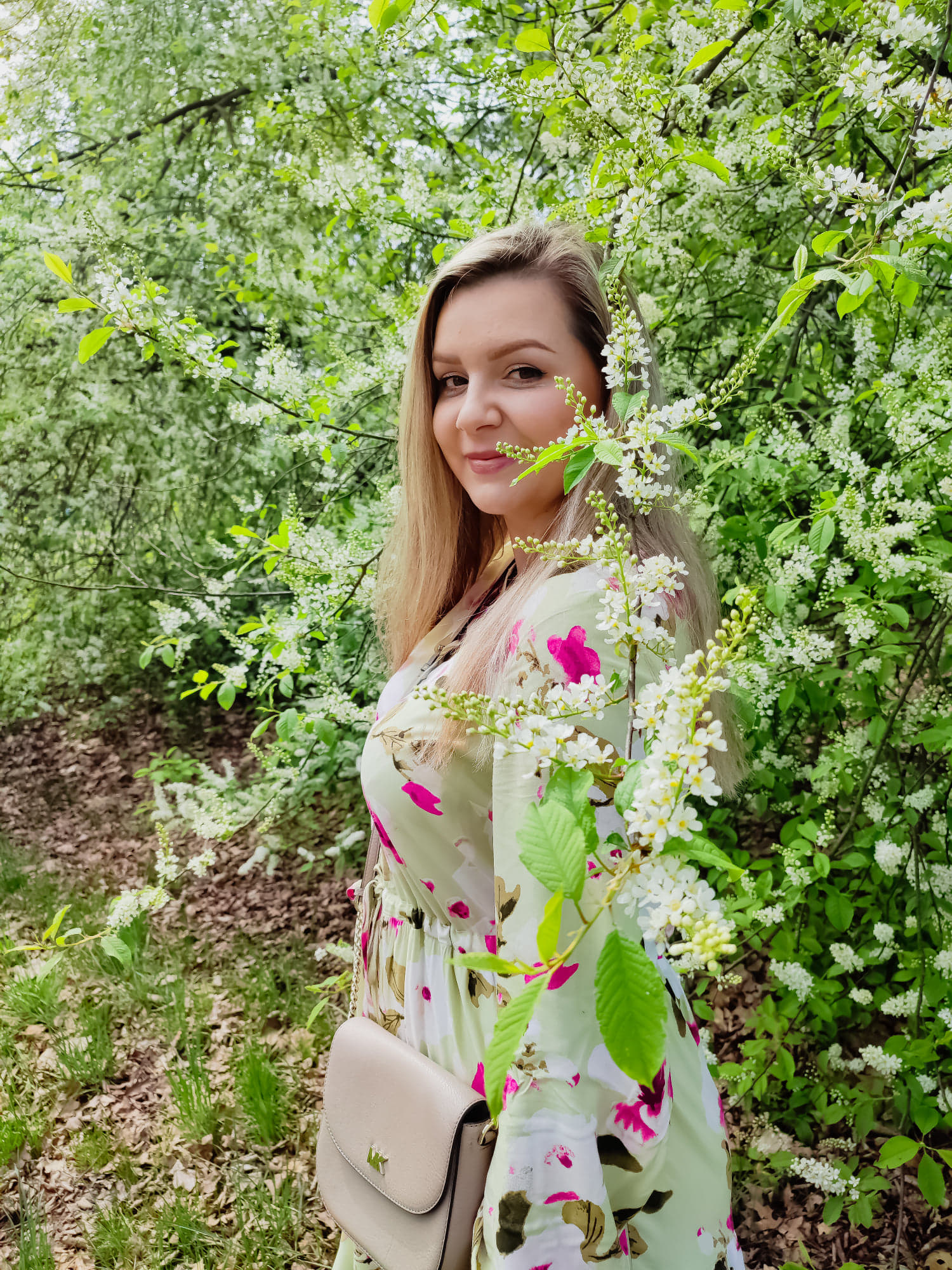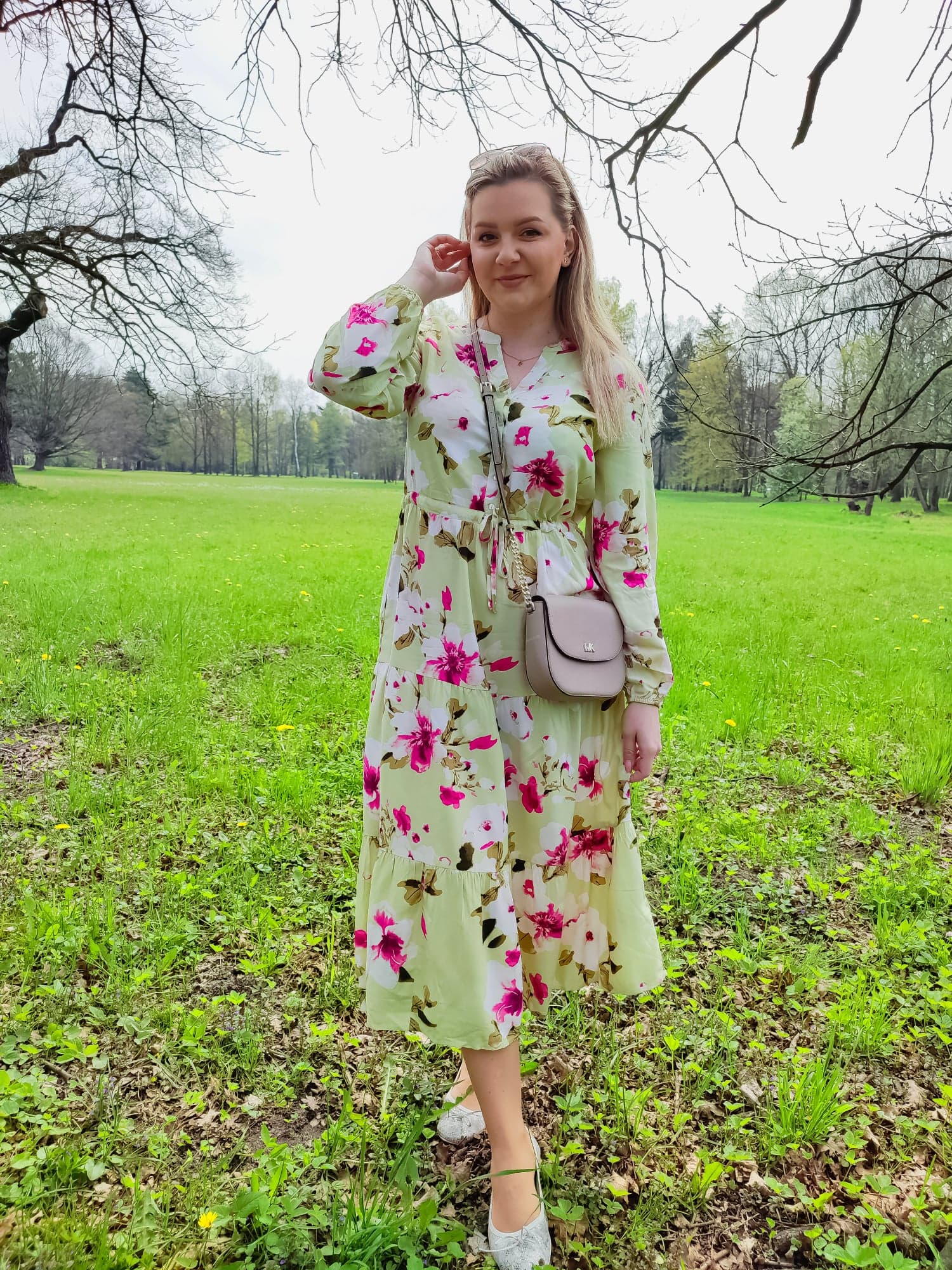 Nareszcie nadeszła piękna, kolorowa i pachnąca wiosna! Długo kazała na siebie czekać po fali deszczowych, szarych i zimnych dni wreszcie zaświeciło słońce i nadszedł czas na zwiewne stylizacje. Uwielbiam sukienki, czuję się w nich jak w drugiej skórze. Kiedyś w mojej szafie były same sukienki, koszule i marynarki. Od kiedy zostałam mamą zaczęło pojawiać się więcej jeansów, ale jak tylko mam sposobność wybieram sukienki. Przy okazji ostatnich zakupów w bonprix zakochałam się w kwiecistej sukience, którą mam na sobie. I chociaż to nie są kolory, które wybieram w pierwszej kolejności, postanowiła zaszaleć.