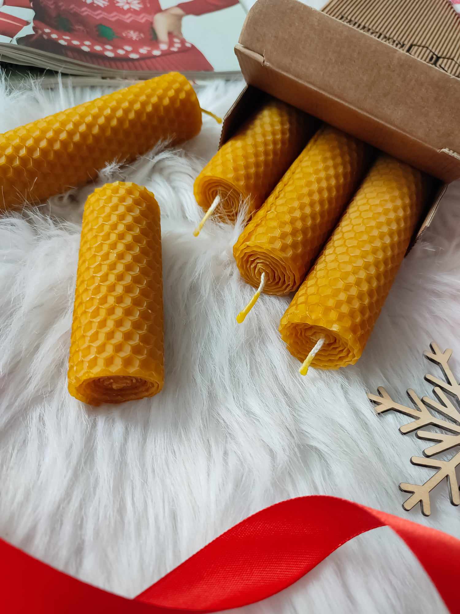 W asortymencie sklepu, znajdziemy także świece. W tym zwijane świece z wosku pszczelego. Występują one także w kilku rozmiarach 8,13, 18, 26 cm oraz w dwóch średnicach 5 i 8 centymetrów. Uwielbiam te świece, ponieważ są w 100 % naturalne, to czysty wosk pszczeli! Warto również wspomnieć, że świece są wykonywane ręcznie. Posiadają naturalny, czysty bawełniany knot. Świece te nie wydzielają dymu. oczyszczają powietrze, poprawiają samopoczucie, mają dłuższy czas spalania bez okopcania i oczywiście wypełniają wnętrze pięknym, miodowym i naturalnym zapachem.